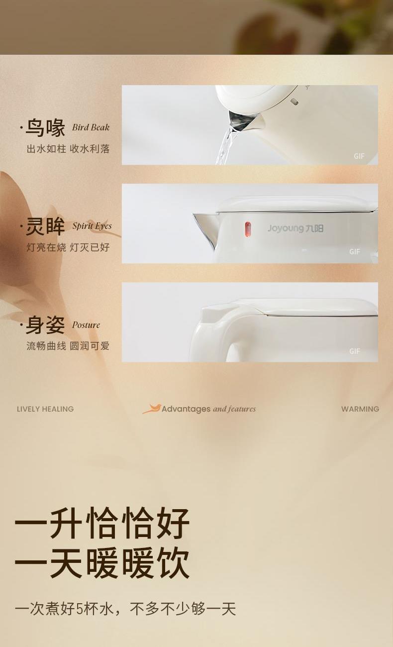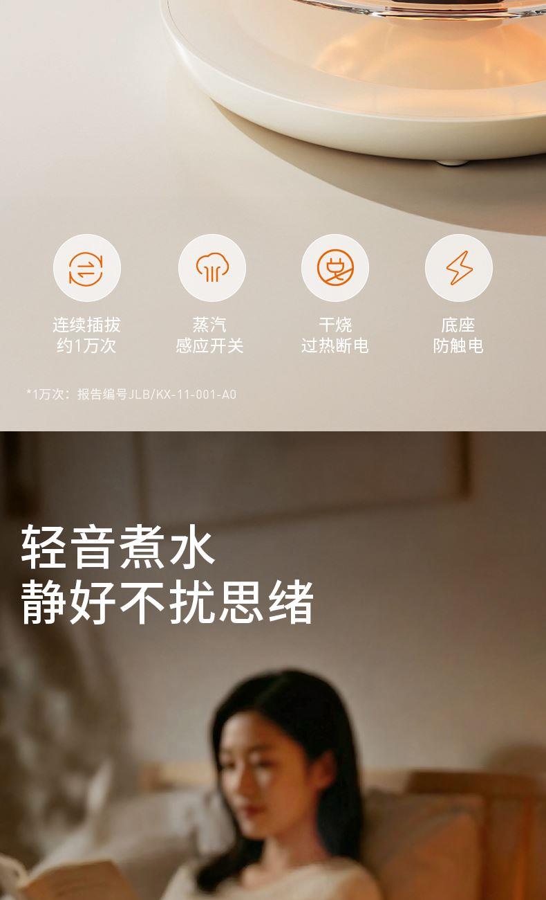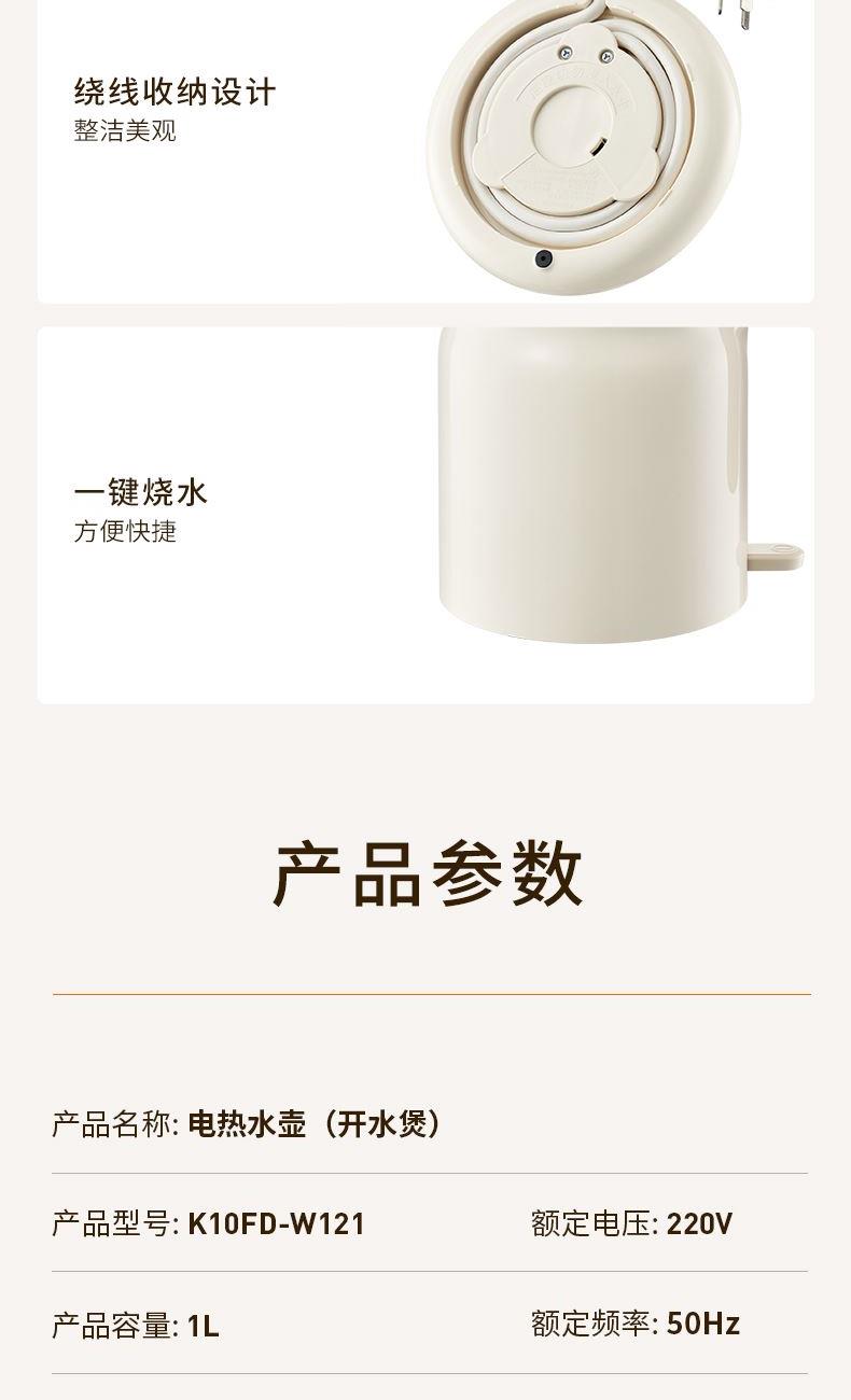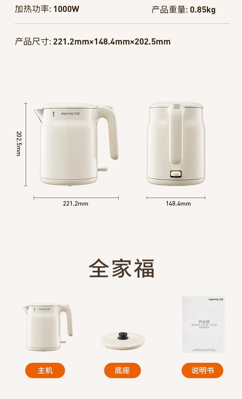 316L不锈钢内胆,煮水纯净安心 1000W大功率,速沸不久等 外塑内钢结构,双层壶身防烫 1L恰好容量