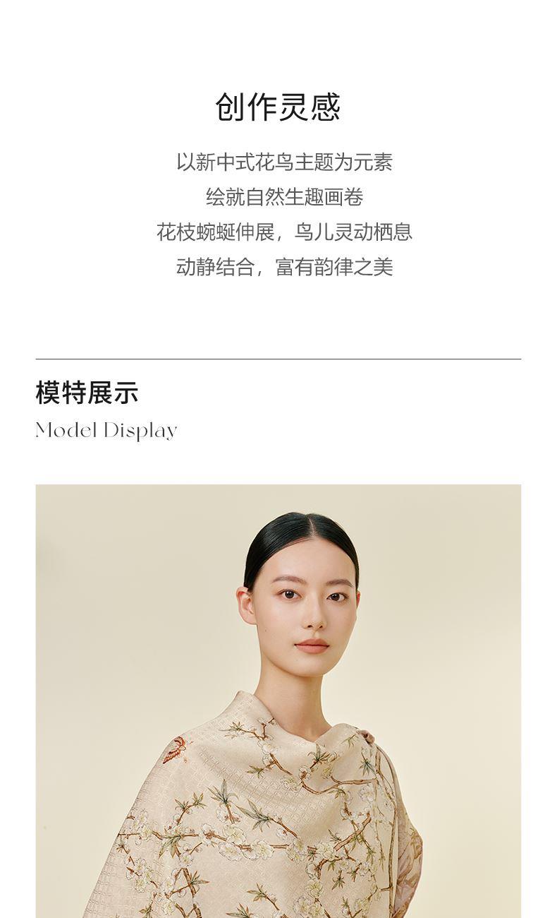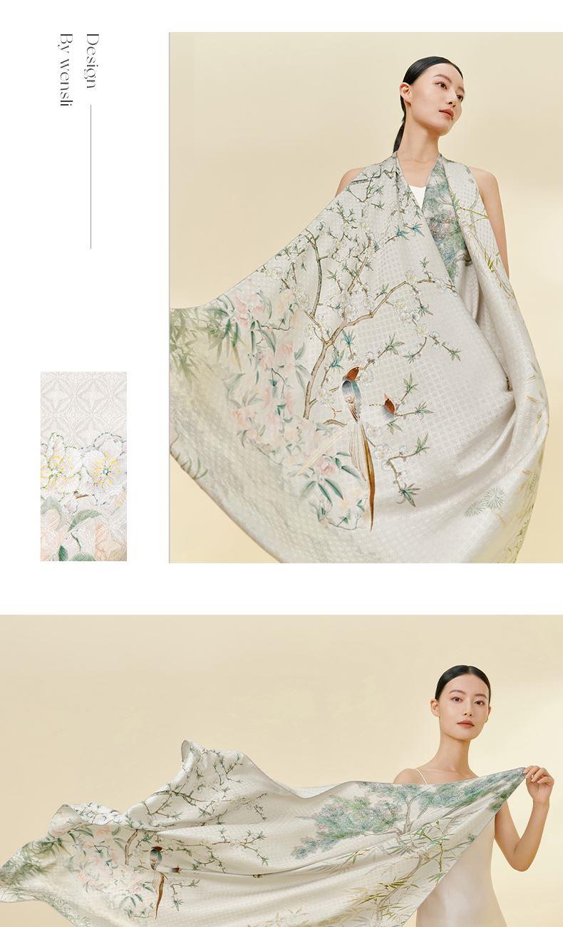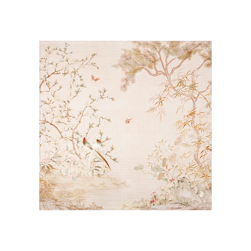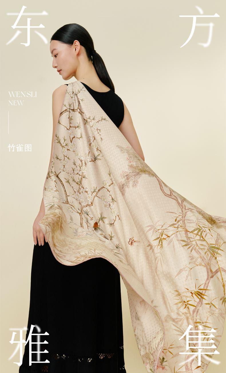 竹雀图-双面印花超大方巾万事利2026春夏专柜新品