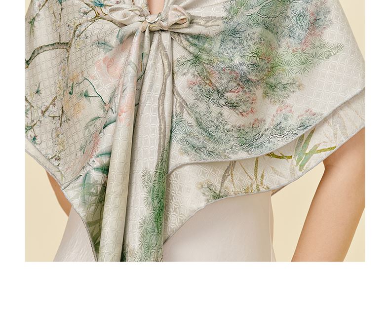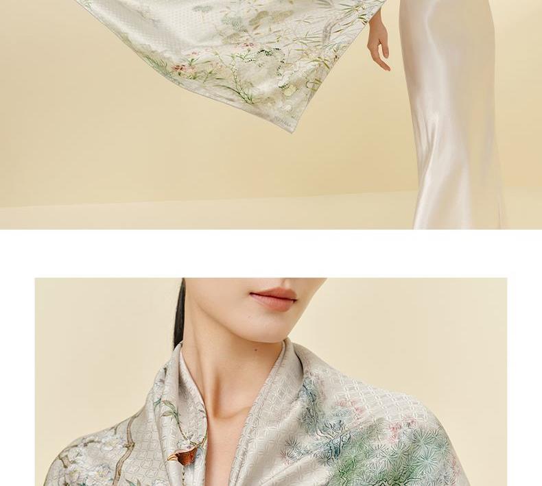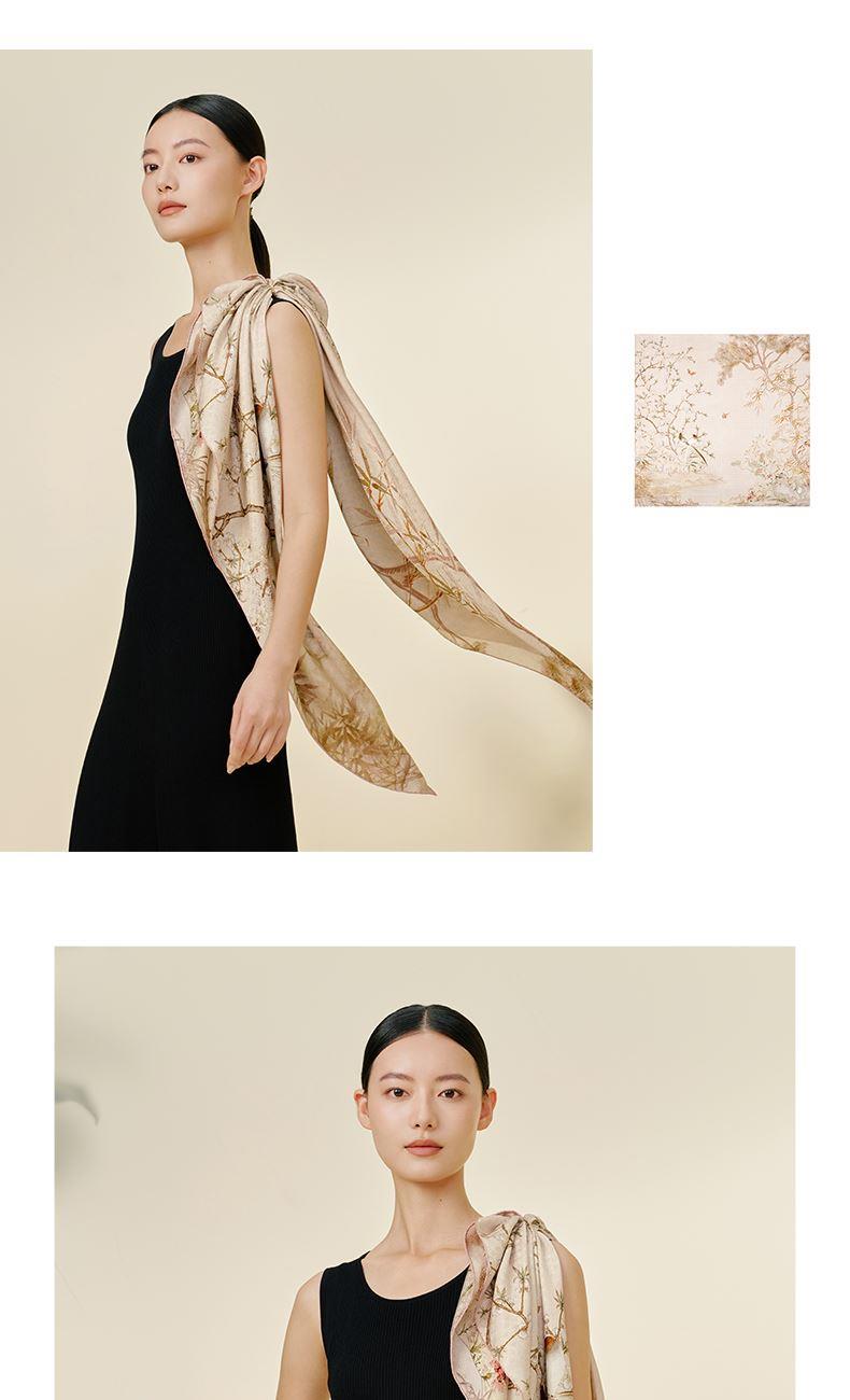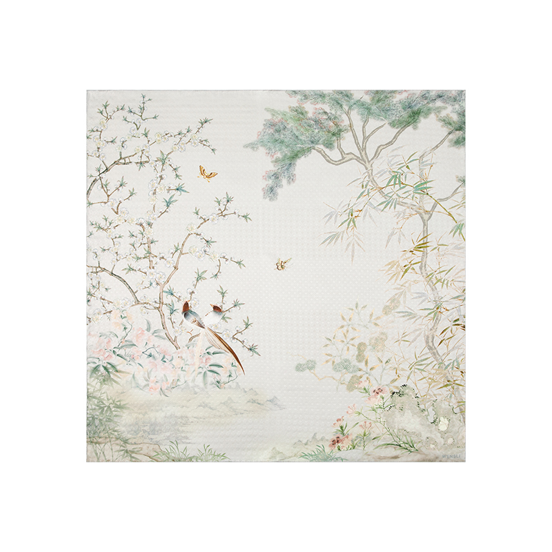 竹雀图-双面印花超大方巾万事利2026春夏专柜新品
