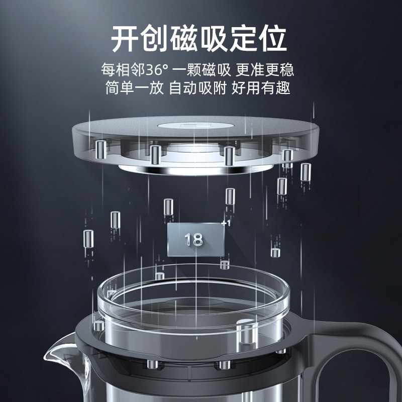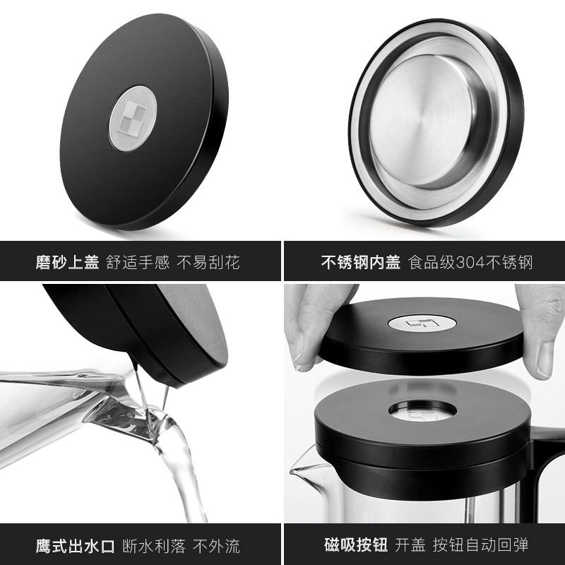 黑色-500mL 磁吸定位,自动吸附上盖 磁吸按钮开盖,自动回弹 人体工程学把手 一按出水,浓淡可控 磨砂上盖,彰显质感 鹰嘴出水口,断水利落 食品级304不锈钢内盖 耐瞬间温差170度