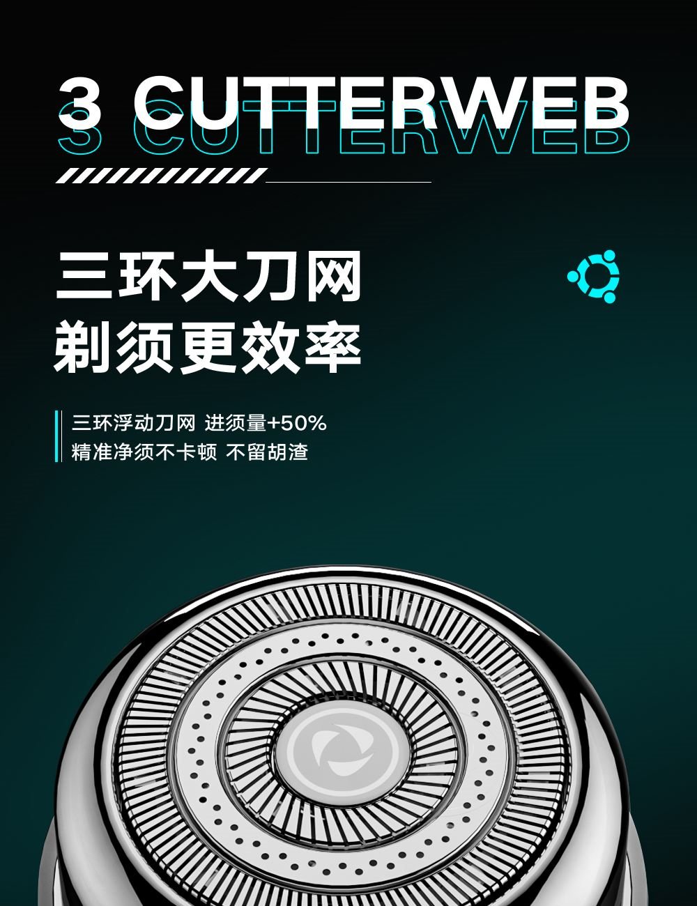 三环大刀网 + 德国研磨刀头,剃须快准净不卡顿