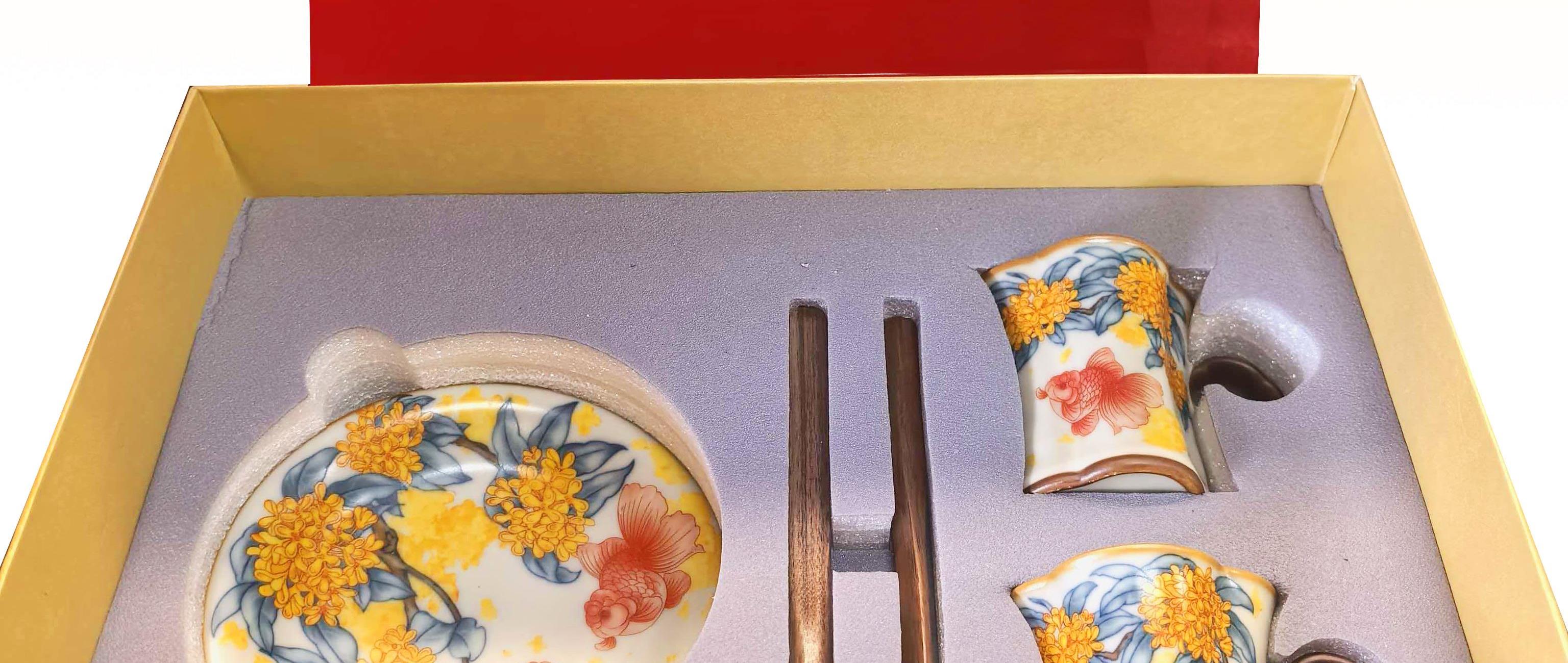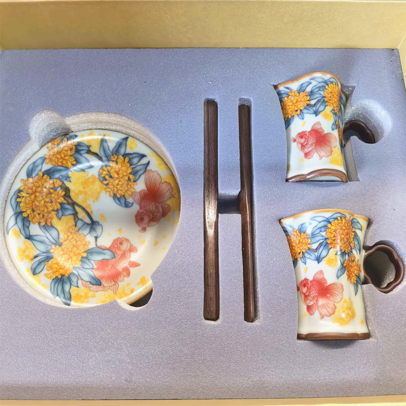 鹏翼金桂献鲤两杯两盘套装