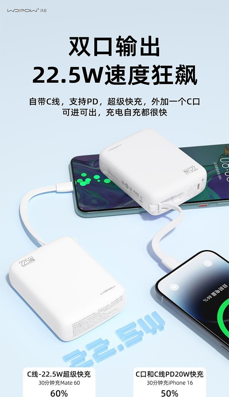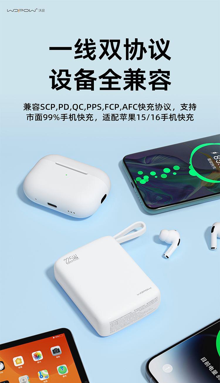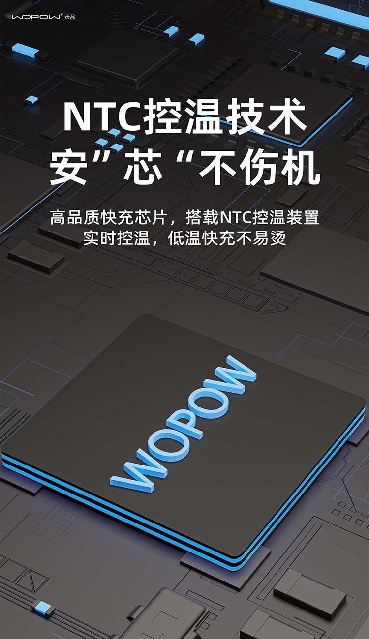 便携自带线,双向快充更安心。NTC控温技术,低温快充不易烫。