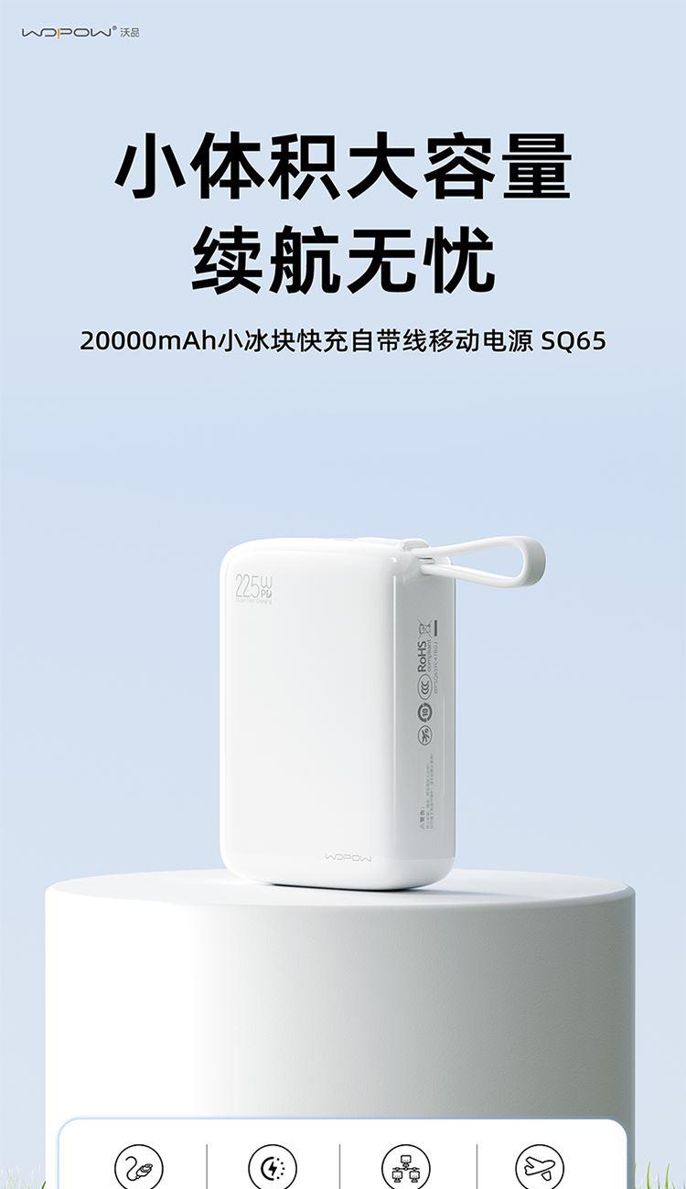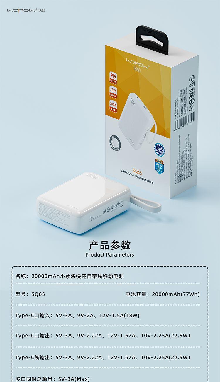 20000mAh小方糖快充自带线移动电源SQ65