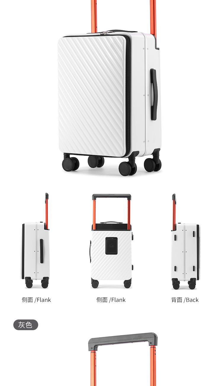 1.合金顺滑拉杆,管壁厚实,经久耐用。 2.采用精致窄铝框加固箱壳,比传统材质更为坚固,抗震。 3.灵活飞机八轮,360°旋转,稳定顺滑,让旅途更省心。 4.内里左右分区,携带物品分装合理。 5.前开盖设计,拿取更方便,出行更便捷。