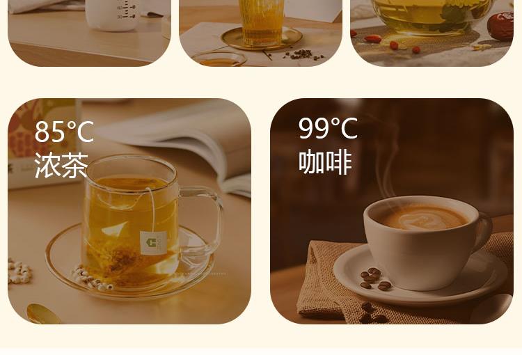 五档智能烧水温度选择(45℃、55℃、70℃、85℃、99℃),两档恒温温度选择(45℃、55℃),轻松应对不同场景需求;
