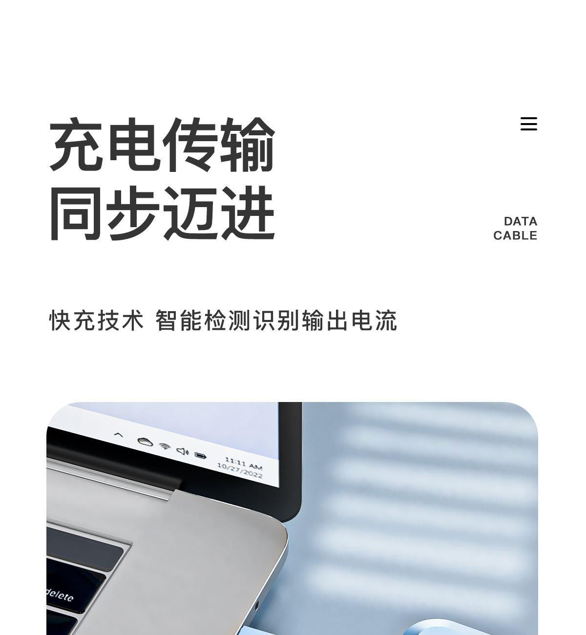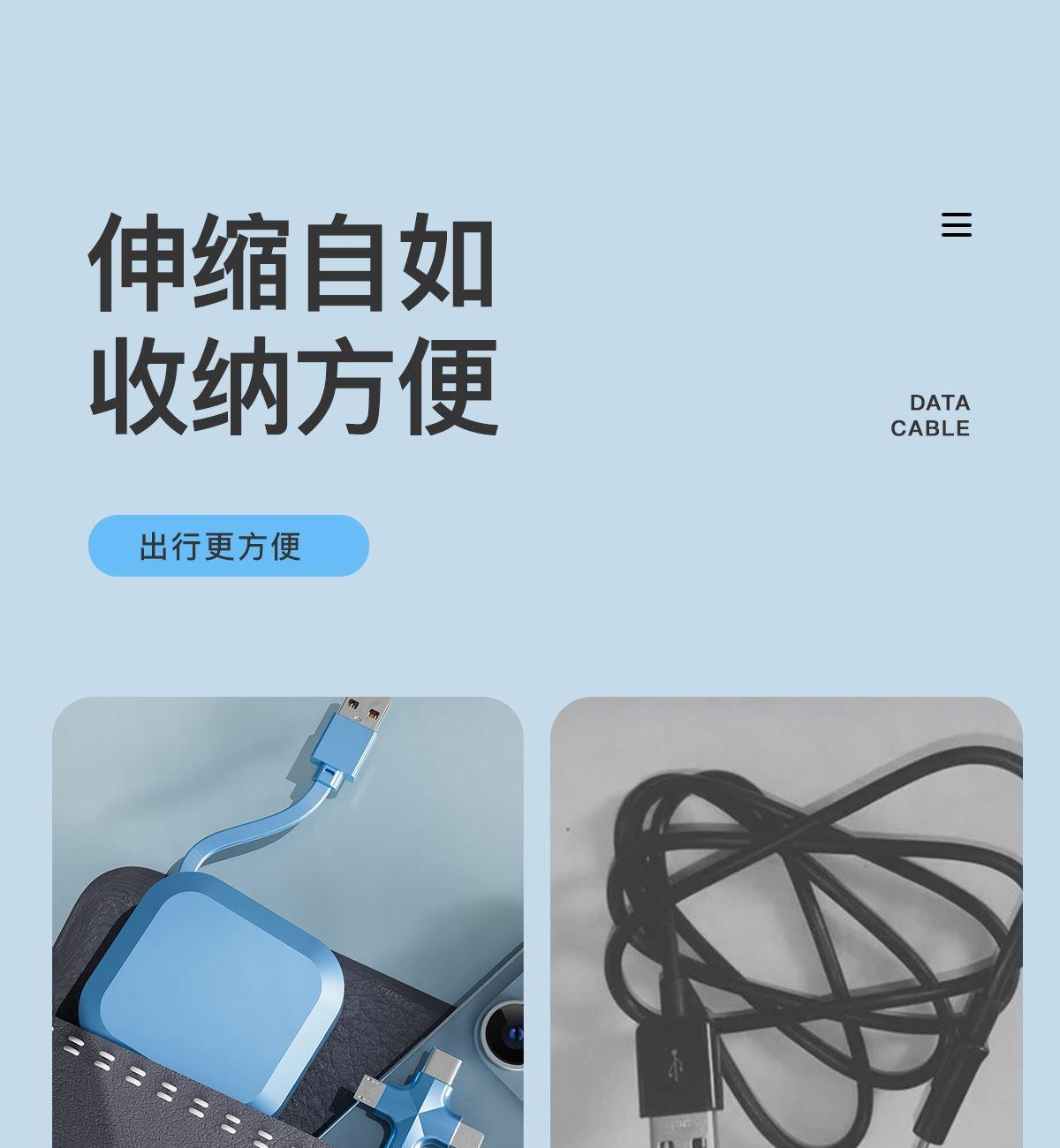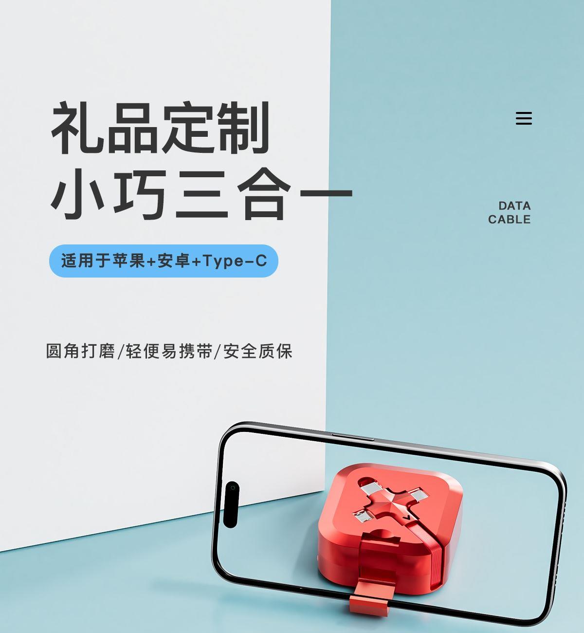 型号:XY-008 长度:1.2M 材质:TPE/ABS/铝合金 功率:66W 适用:TYPE-C/苹果/安卓 颜色:红色,蓝色,绿色,白色,黑色 产品重量:约115g 产品卖点:Type-c接口支持快充, TPE环保材质,防缠绕,耐拉伸,经久耐用,加固接头,广泛兼容,适用市面绝大多数手机。