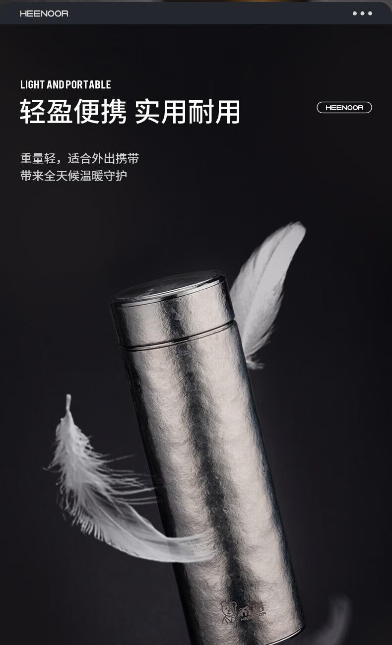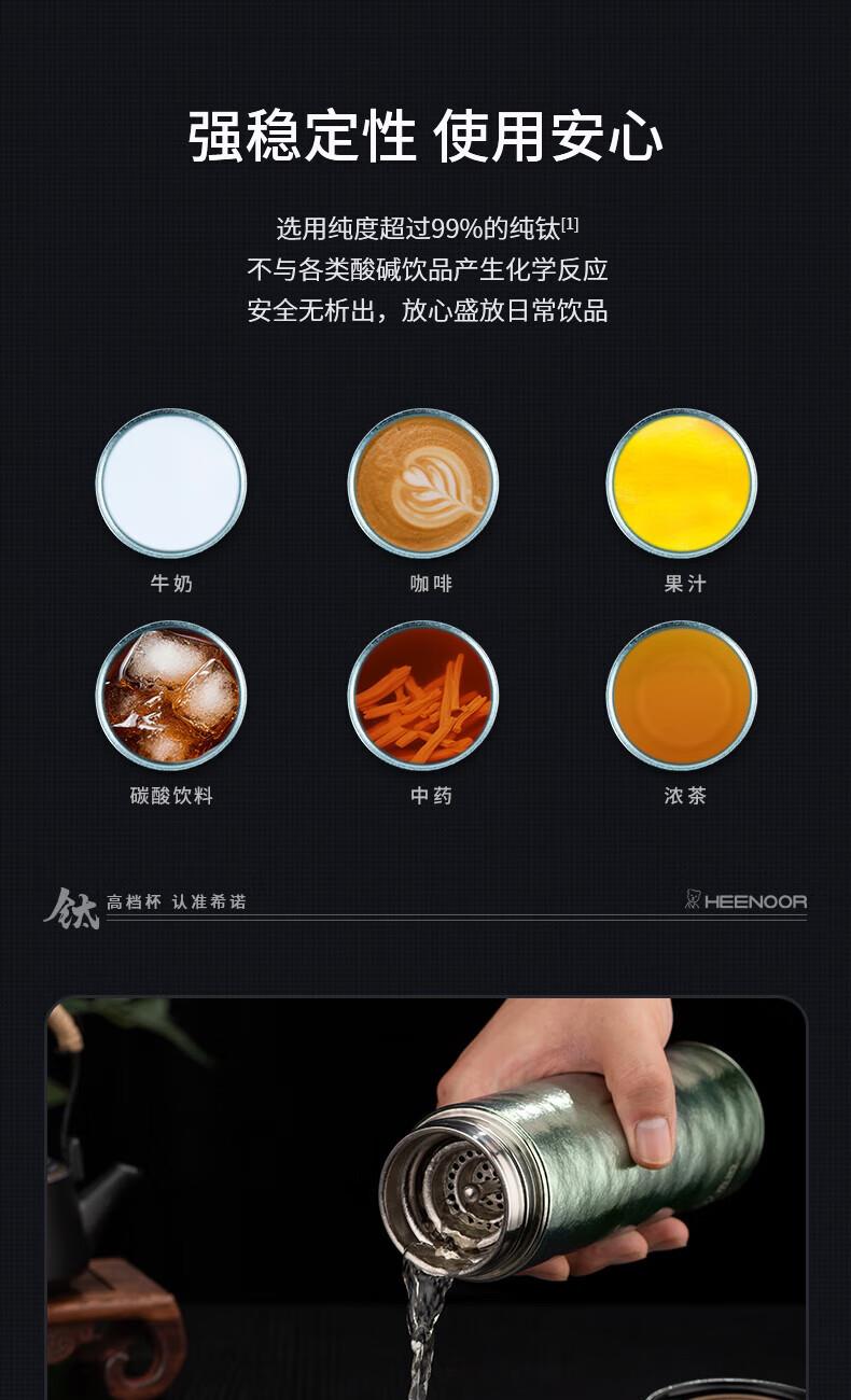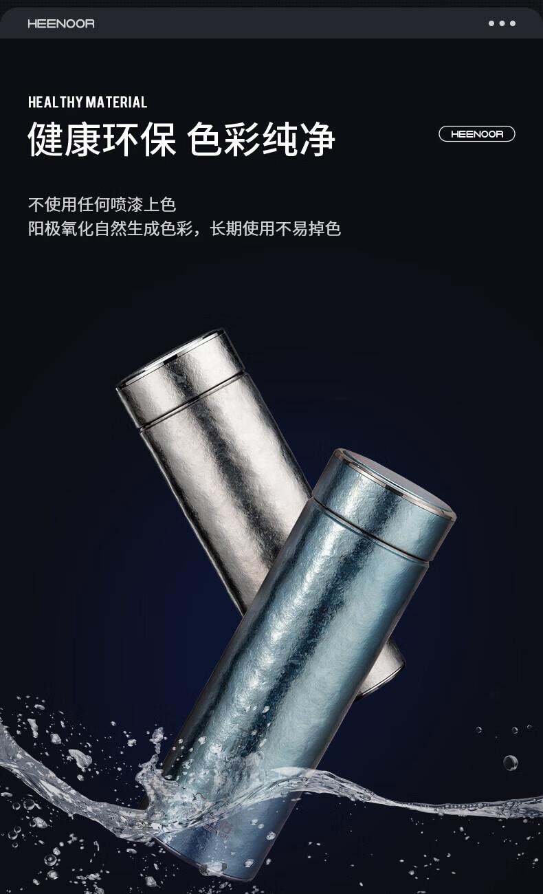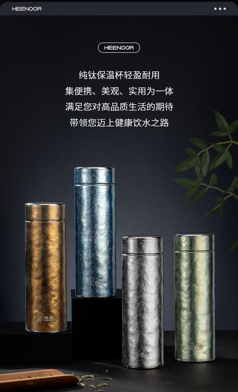 材质: 内胆-钛/杯身-钛 颜色:云海雾凇/日照金山/纯净冰川/青黛梯田 附加组件:带茶隔 杯盖样式:旋盖 容量:345ml