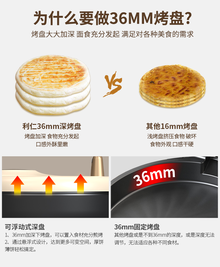 利仁36mm加深盘电饼铛LR-J3198