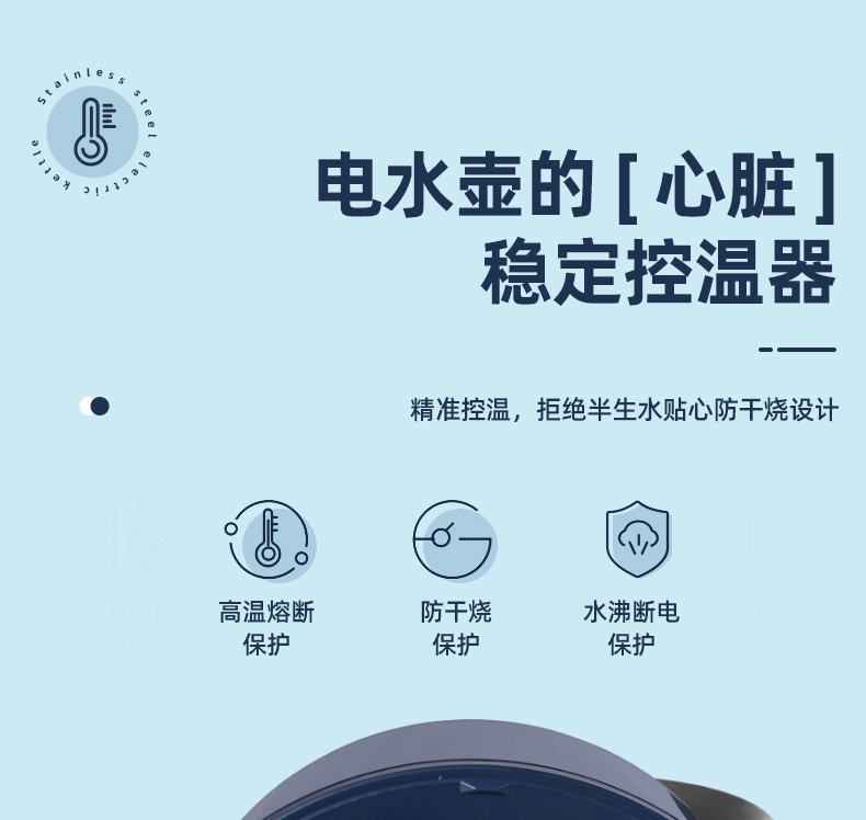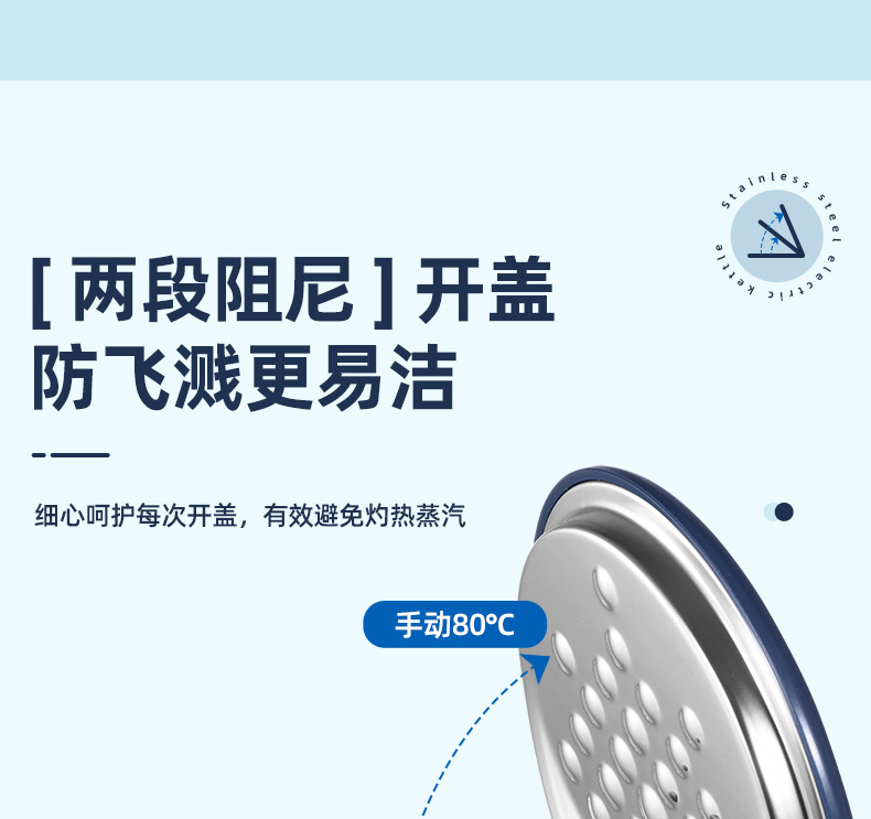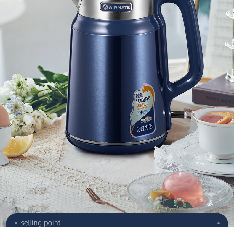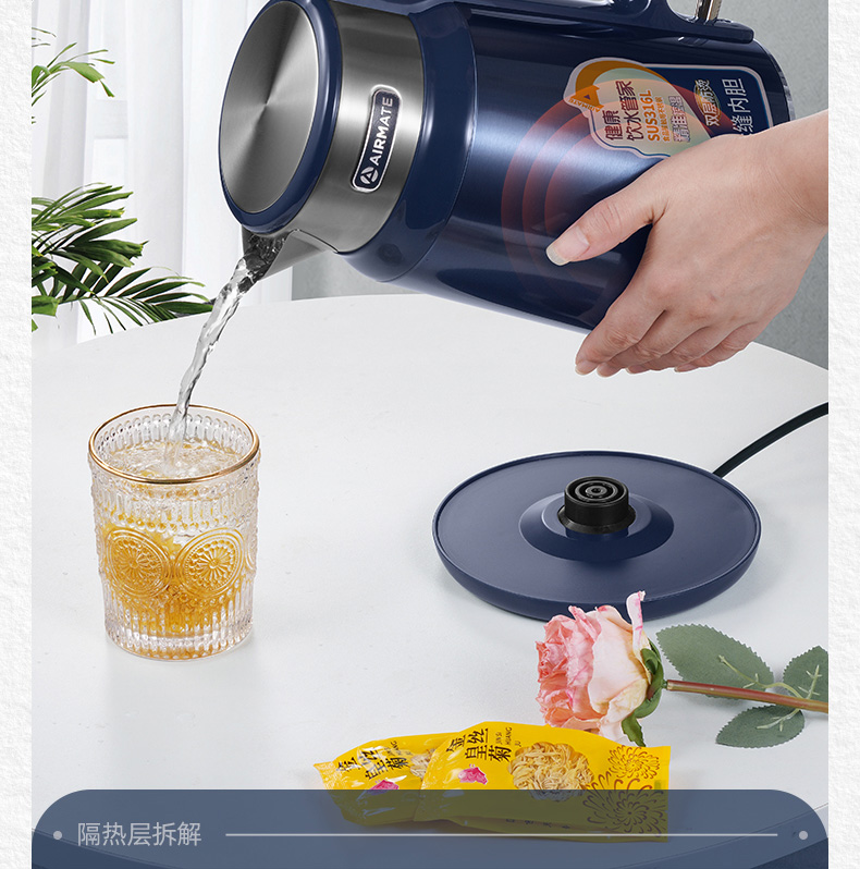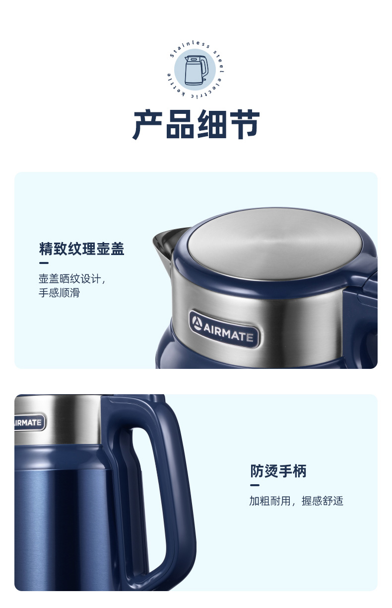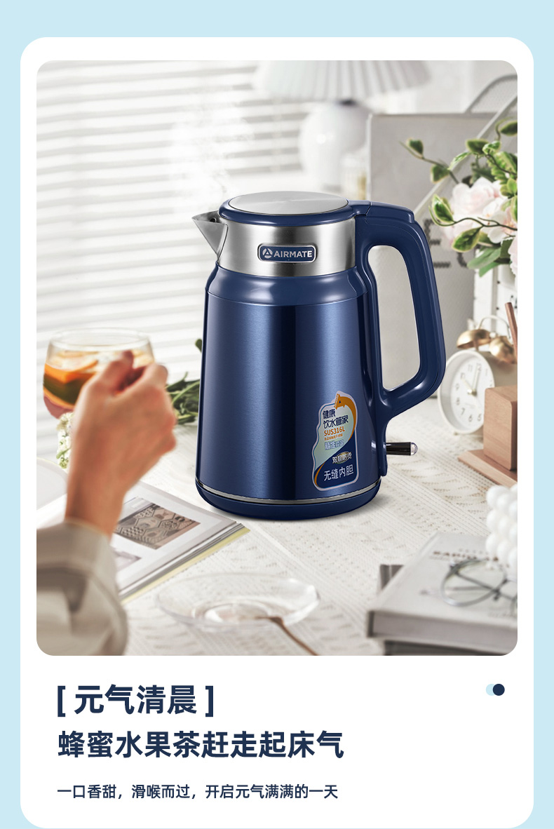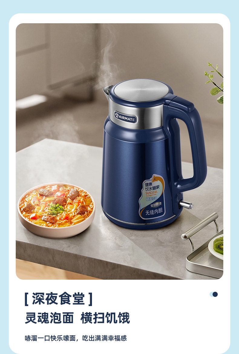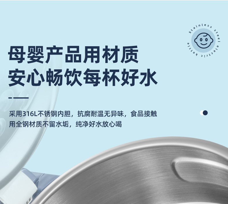 额定容量:2.0L 额定功率:1800W 额定电压:220V- 额定频率:50HZ 净重:1.08Kg 毛重:1.42K9 包装尺寸:230x190x310mm 1.316L 食品级不锈钢内胆,饮水更安心 2.2.0L大容量直供全家需求 3.双层防烫设计隔绝高温 4.无缝内胆清洗更彻 底 5.外塑内钢设计,既防烫又锁温,全家都能安心使用