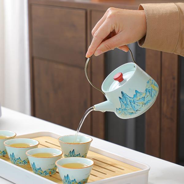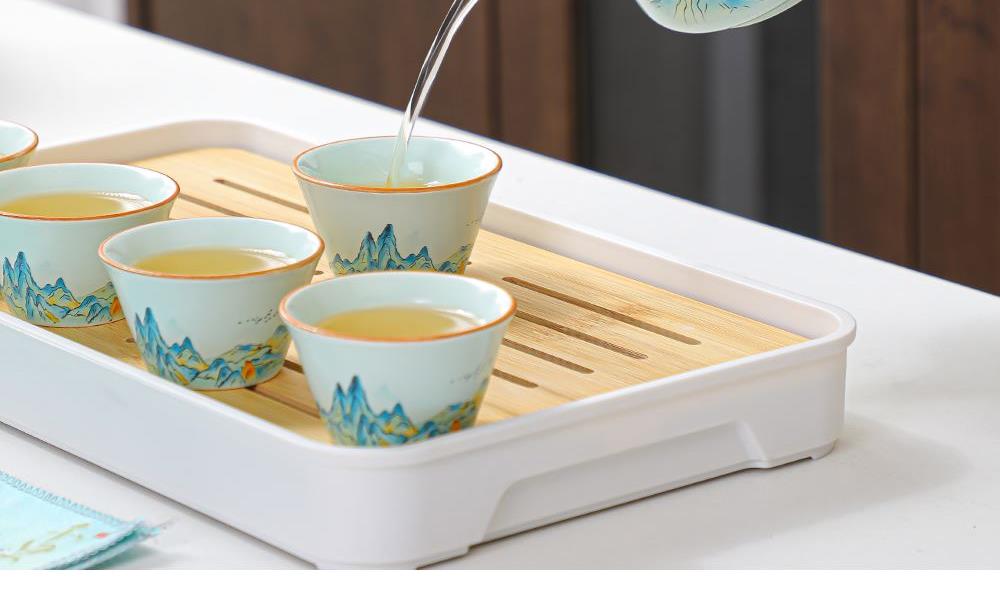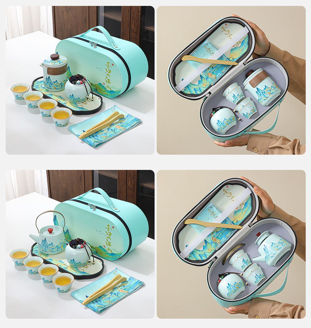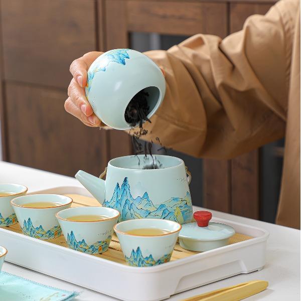 壶:11.8*13.5厘米 190ml 茶叶罐:7.8*7.8厘米 品茗杯:6.3*3.8厘米60ml 礼盒:30*13*14.5厘米 天然矿物釉,高温烧制无铅镉 ,精挑原料细筛瓷土,搭配礼盒包装,自用赠礼两宜,品质保障,甄选好礼。