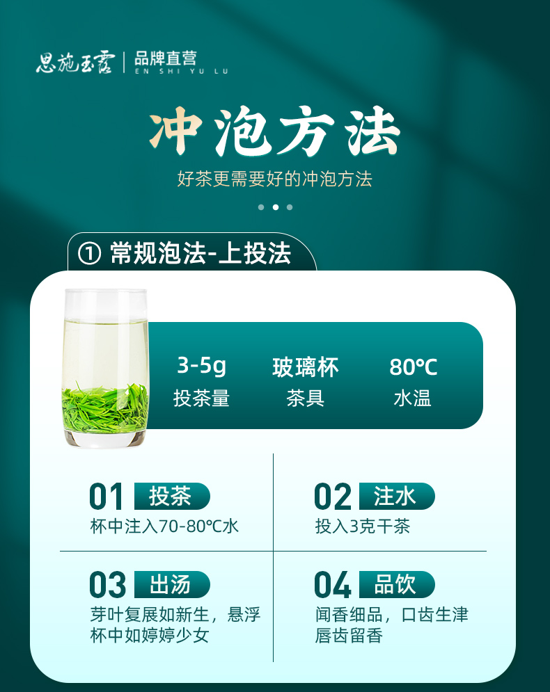 4、采用非遗蒸青工艺,很大程度保留茶叶的叶绿素、氨基酸等天然物质,形成 “干茶翠绿、茶汤嫩绿、叶底鲜绿” 的 “三绿” 独特风貌。