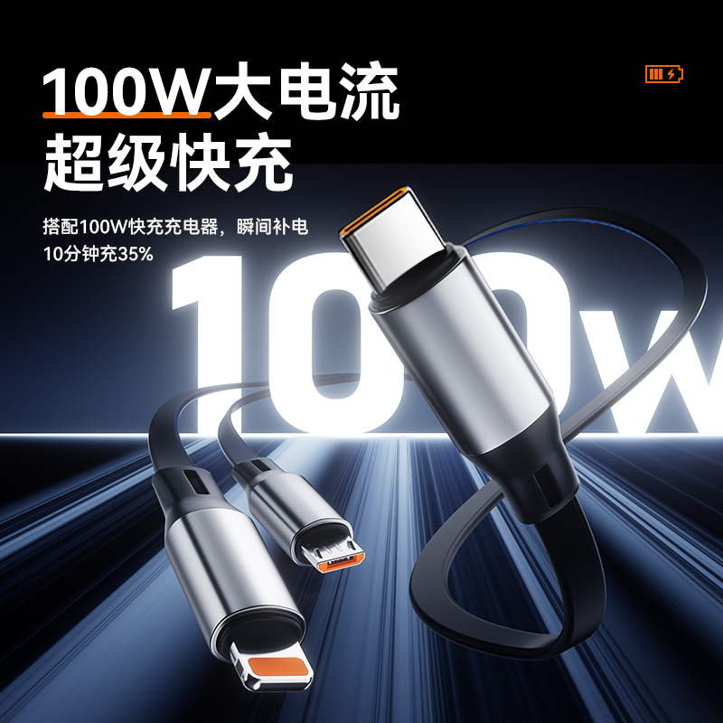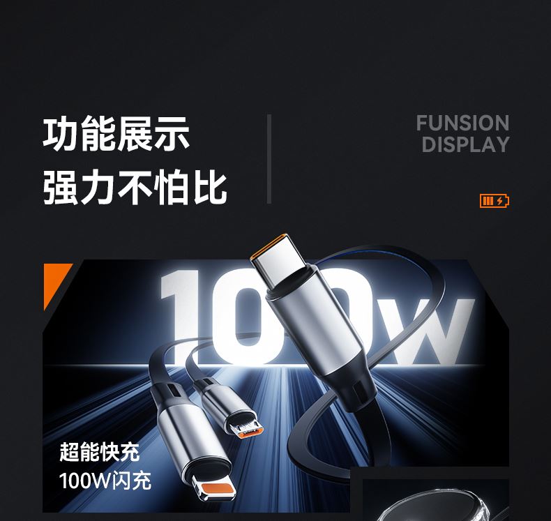 型号:XY-016 长度:1.2M 材质:TPE/ABS/铝合金 功率:100W 适用:TYPE-C/苹果/安卓 颜色:黑色,紫色 产品重量:约58g 产品包装尺寸:140*90*27mm(彩盒) 产品卖点:Type-c接口支持快充, TPE环保材质,防缠绕,耐拉伸,经久耐用,加固接头,广泛兼容,适用市面绝大多数手机。