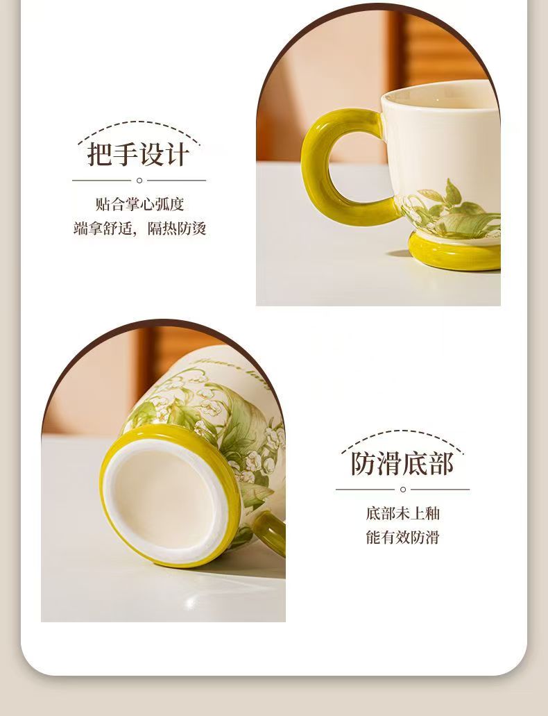 细腻陶瓷质感:高温烧制陶瓷,瓷质细腻顺滑,握感舒适,不烫手也易清洗。