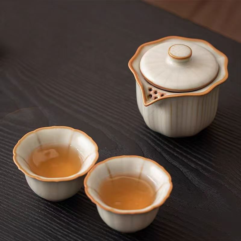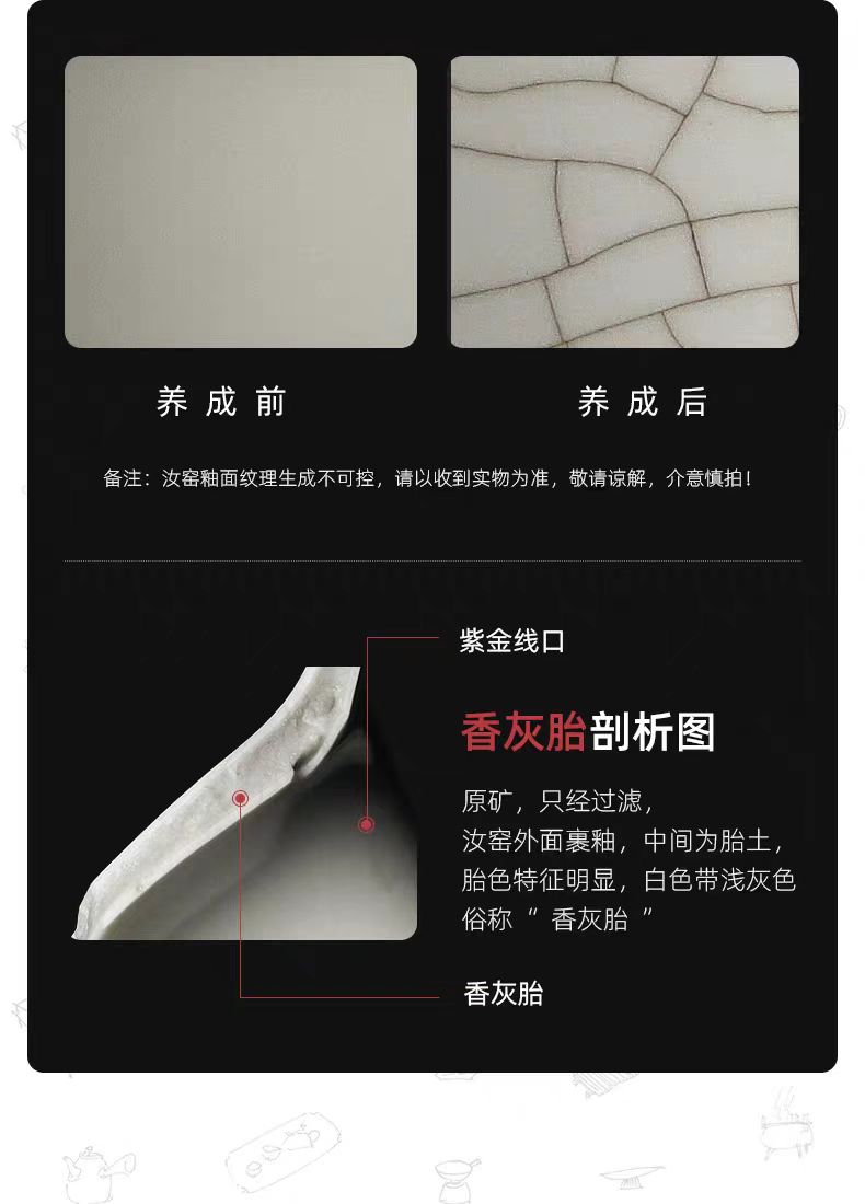 规 格:壶:9.8*8cm 杯7.1*4.2cm 配 制: 1壶2杯 1胡桃木茶盘 1手提锦盒 材质:黄汝瓷 胡桃木 皮箱 推荐说明:亚黄汝瓷,玛瑙入釉,蝉翼开片。技术新品,采用高价优质瓷土,紫口铁足。立体浮雕杯身。杯身开片,可养瓷。