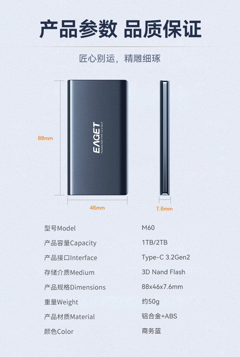 (EAGET)忆捷M60高速移动固态硬盘迷你商务1TB