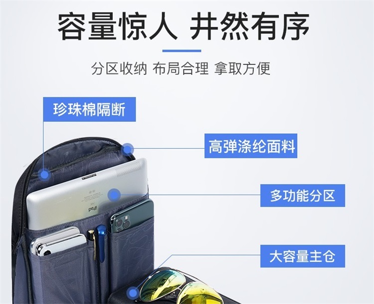 型 号:91419 尺 寸:90*270*220MM材 质:聚酯纤维 颜 色:黑色 重 量:0.4kg 容量惊人井然有序,分区收纳布局合理拿取方便,精致商务出行