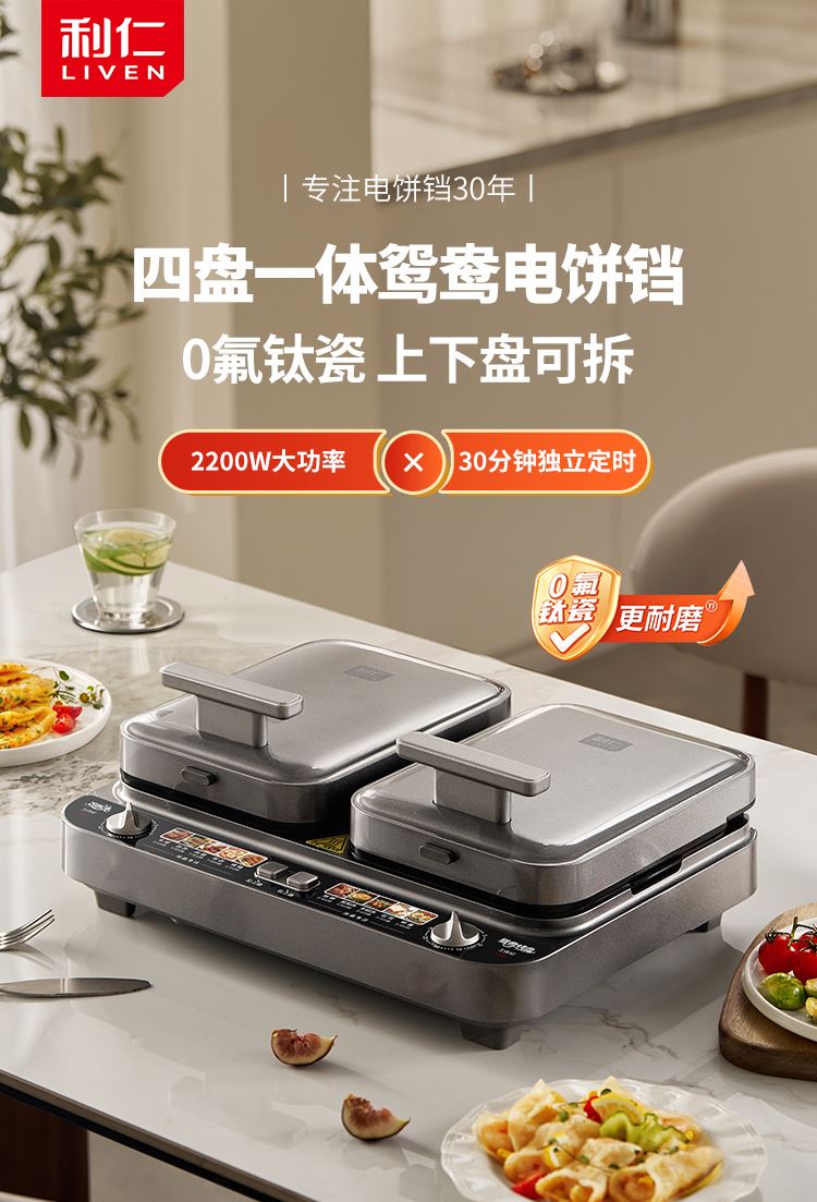 利仁双盘可拆卸电饼铛LR-J1259