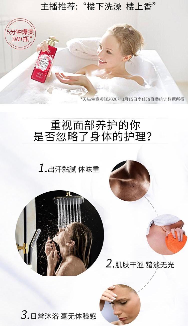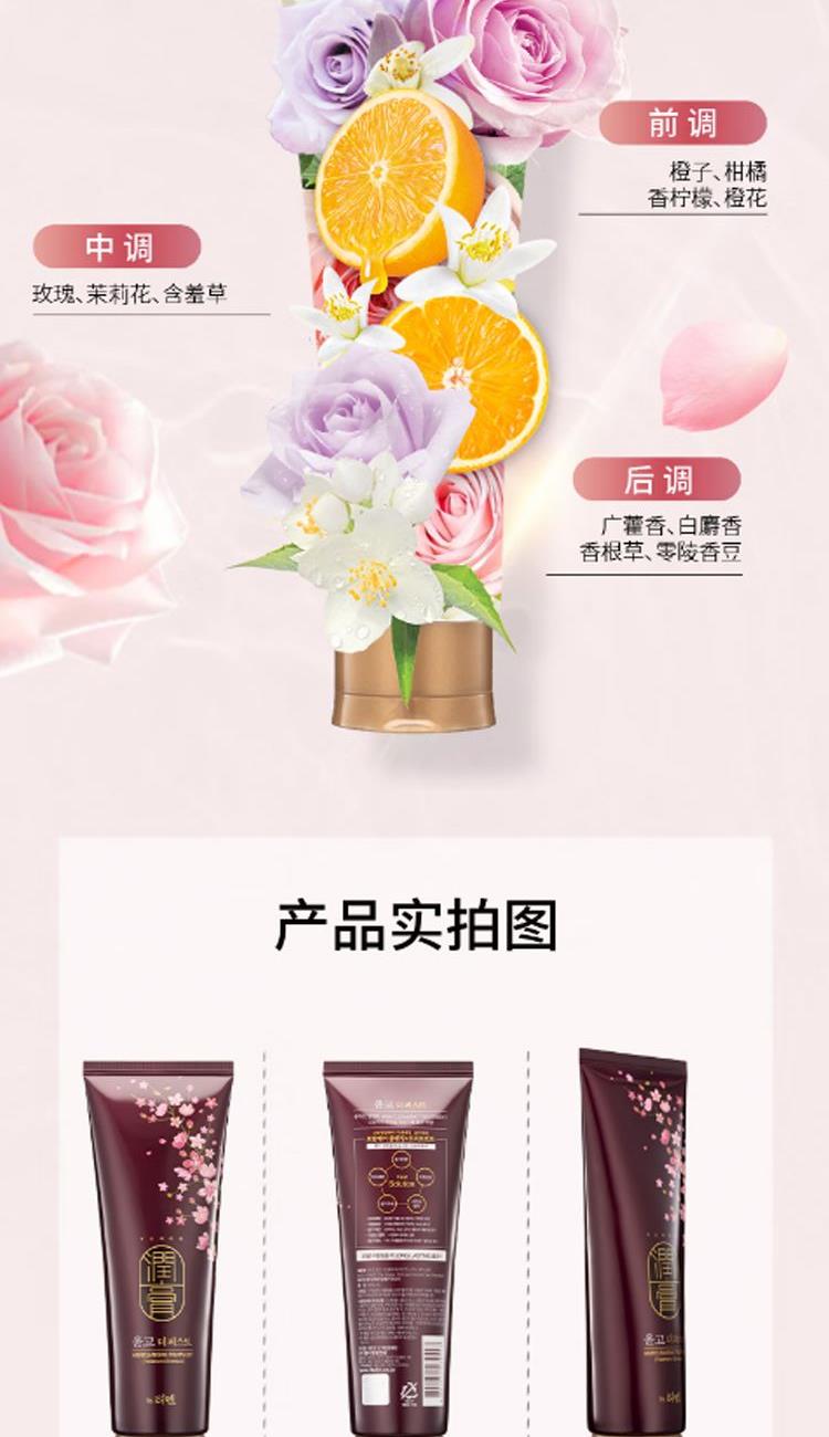 香水级香氛(馥郁香气 丝丝索饶),清洁皮肤,滋润美肌,留香更长,植物精油成分,细致渗透力,肌肤易吸收,打造润泽美肌。 洗发水:蕴含百种植物精粹,100种天然原料成分,带来全效合一营养护理,令秀发富有弹性,散发透亮光彩。补水水分,带给秀发健康和弹性,赋予秀发真正的耀眼光泽。 使用发质:针对失去活力缺乏润泽发质