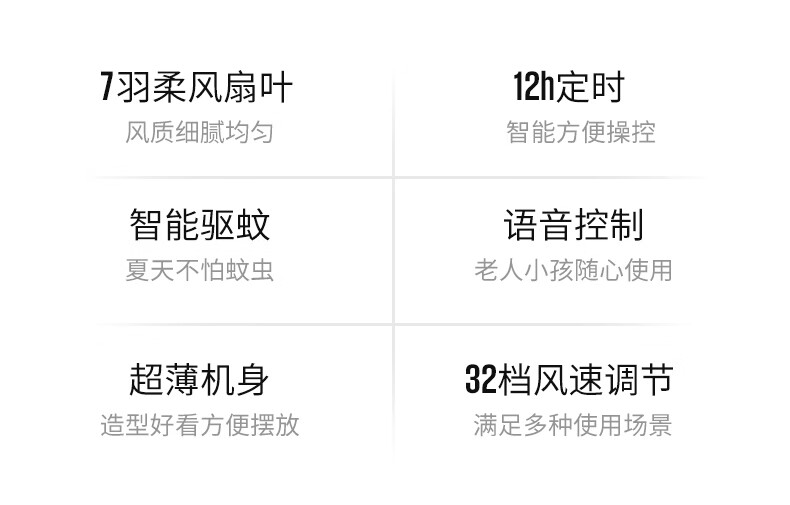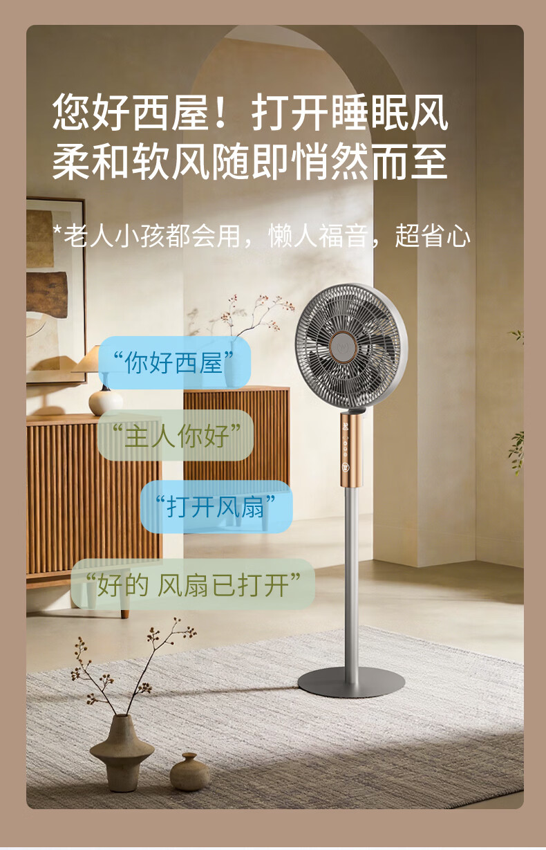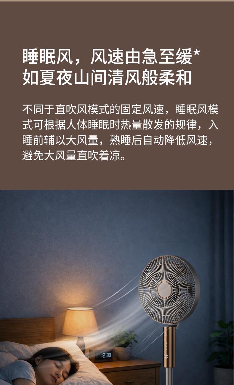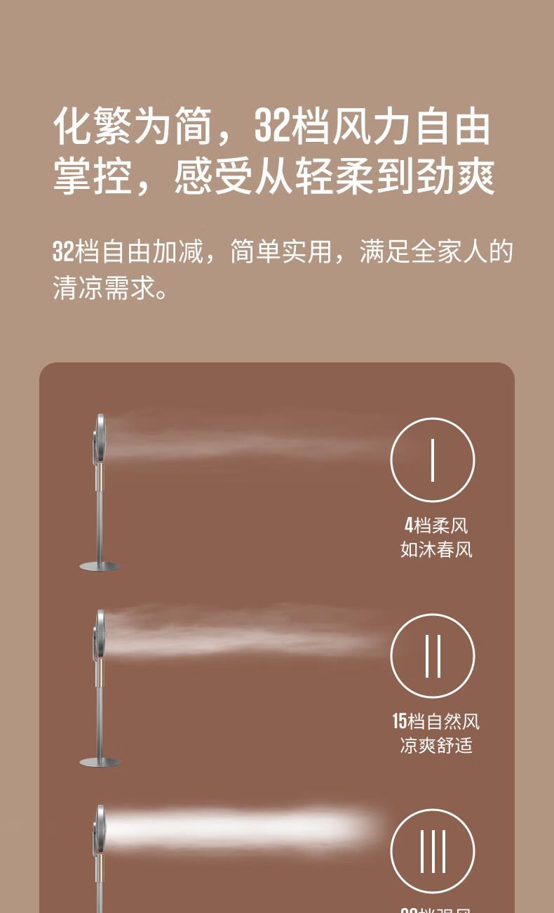 型号:WTH-ZL255 功率:20W 控制方式:智慧语音/触屏/遥控/手机小程序 风速档位:32档 产品尺寸:336*300*1100mm 一级能效 32档风速调节 直流无刷电机 智慧语音/触屏/遥控/小程序 一机两用,吹风+超声波驱蚊 自然、睡眠、婴儿、正常风