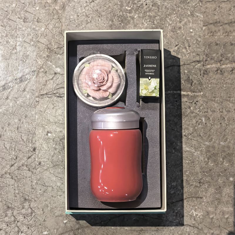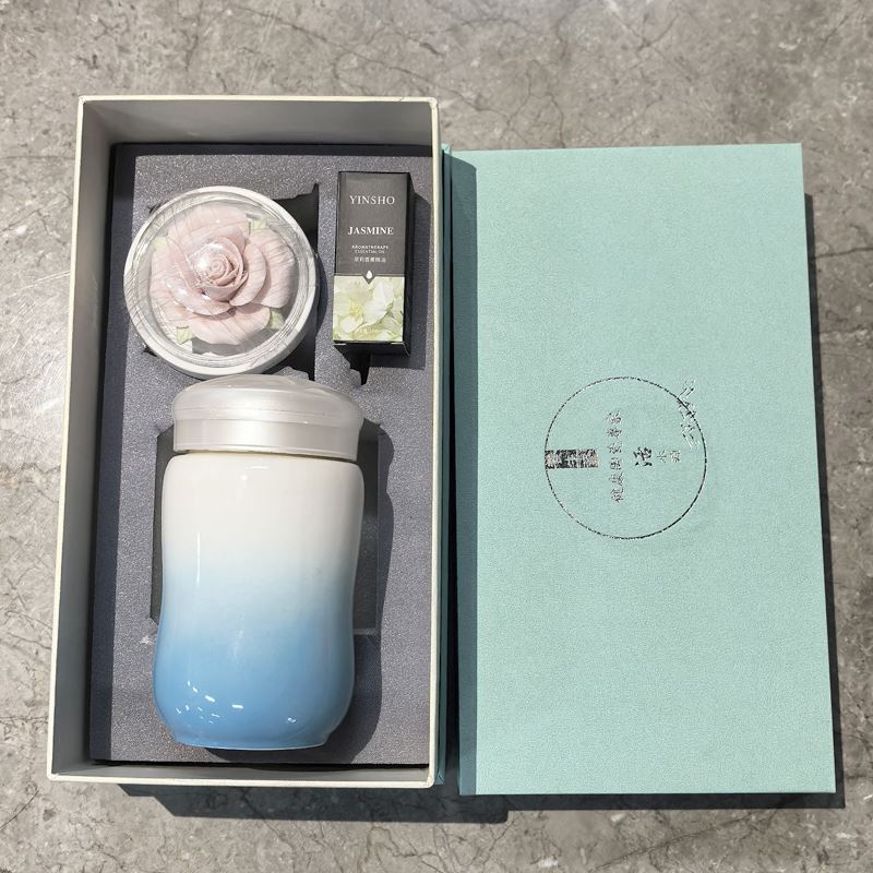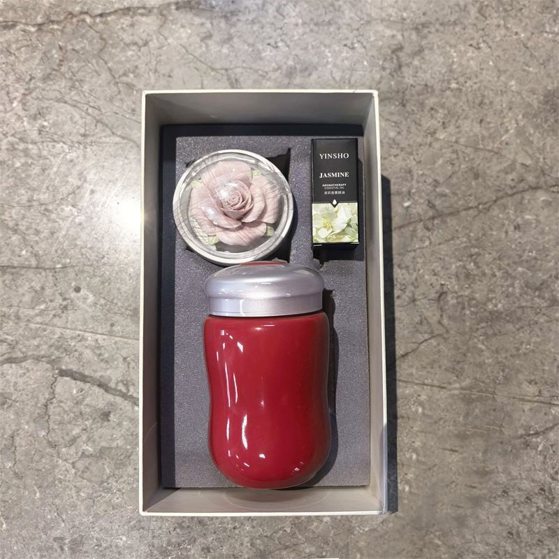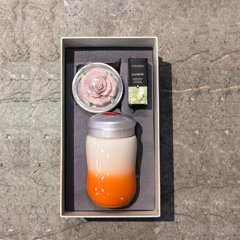 配 制: 1保温杯 1玫瑰瓷雕香薰 1精油 1礼盒 手提袋 材质:高白瓷 手工瓷雕 规格:保温杯直径6*高13cm*口径5.5cm 容量300-350ml 玫瑰扩香器7.9*4.3cm 推荐说明:玫瑰香薰套装,非遗文化手工瓷雕玫瑰,扩香器,配精油一瓶。多种保温杯颜色可选。