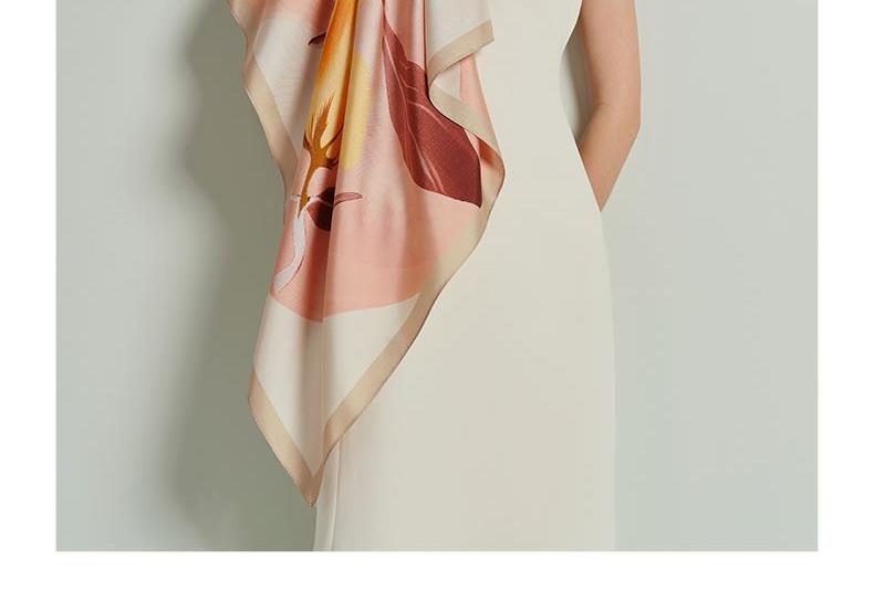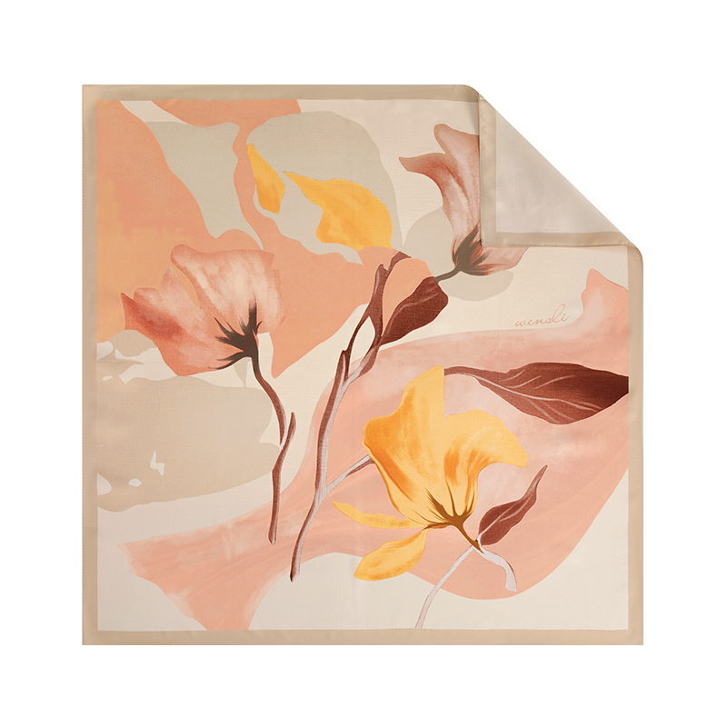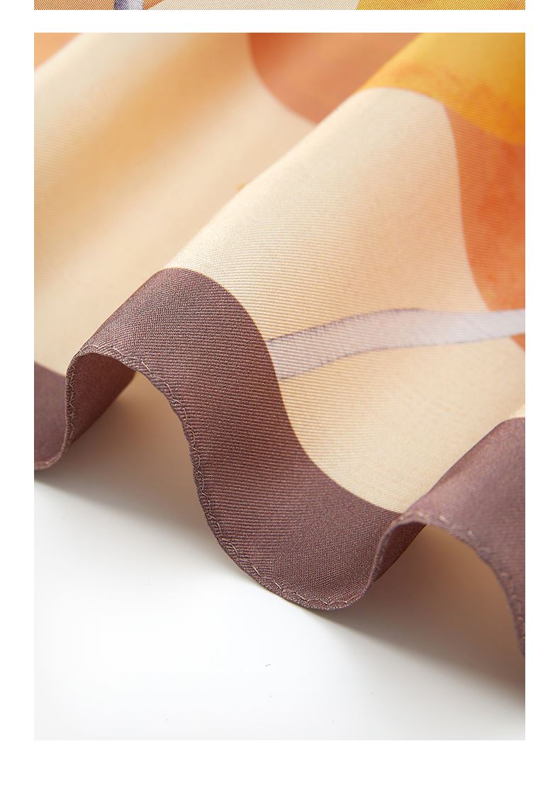 尺寸:88CM×88CM 材质:100桑蚕丝 面料:斜纹绸 卷边:机卷 颜色:粉色/蓝色/咖色 工艺:双面同色