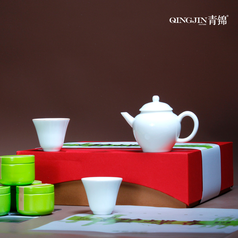 伯仲单杯*2 伯仲壶*1 洞庭碧螺春*8罐 手提袋套*1 精装礼盒*1 材质 伯仲壶/单杯:德化白瓷 明前碧螺春:金属罐/每罐5克 定制工艺 :激光 镭射 印刷 烫压印 赠送场景:商务拜访 会议随手礼 企业形象推广礼 茶器 :110*68*80mm;单杯: 52*50mm;茶叶罐 :45*45mm;礼盒:272*272*83mm