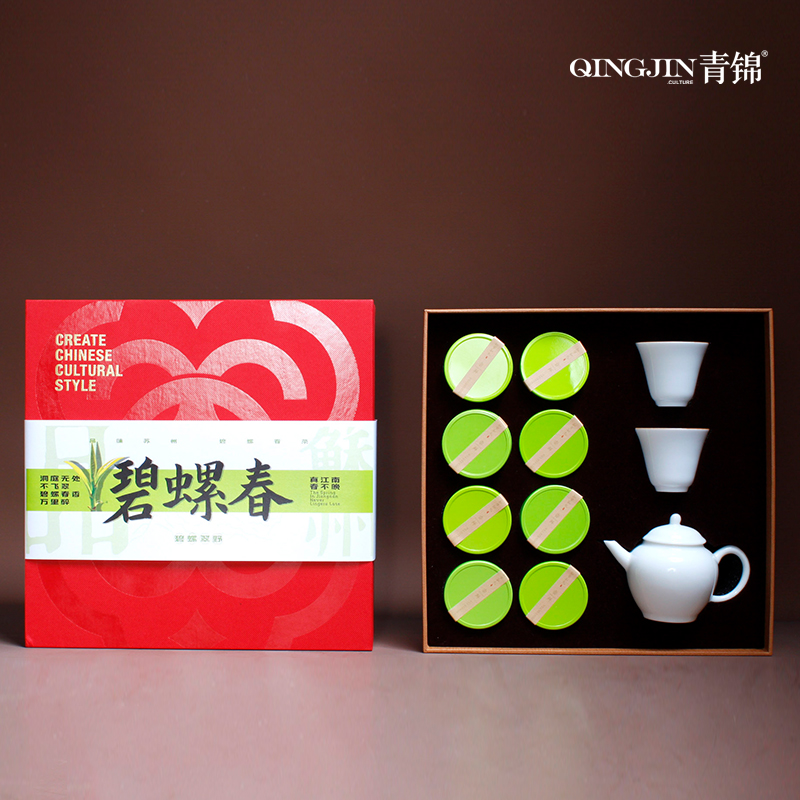 吉祥茶韵碧螺春礼盒新中式茶礼8罐明前茶白瓷茶具送长辈领导