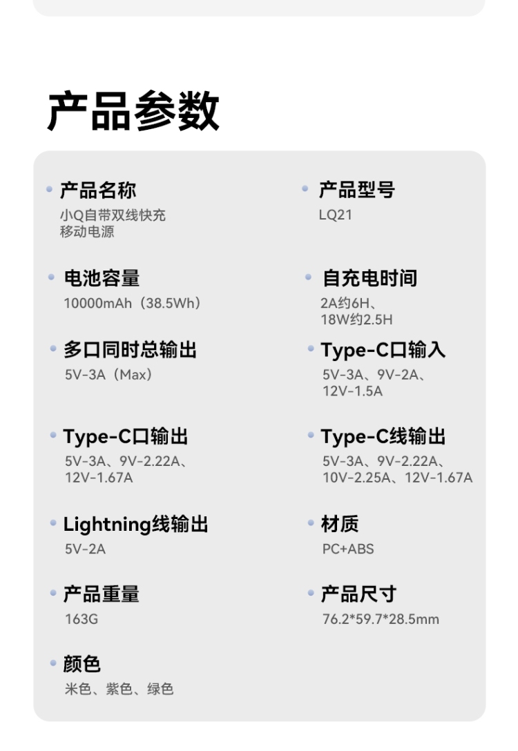 小Q自带双线快充移动电源LQ21