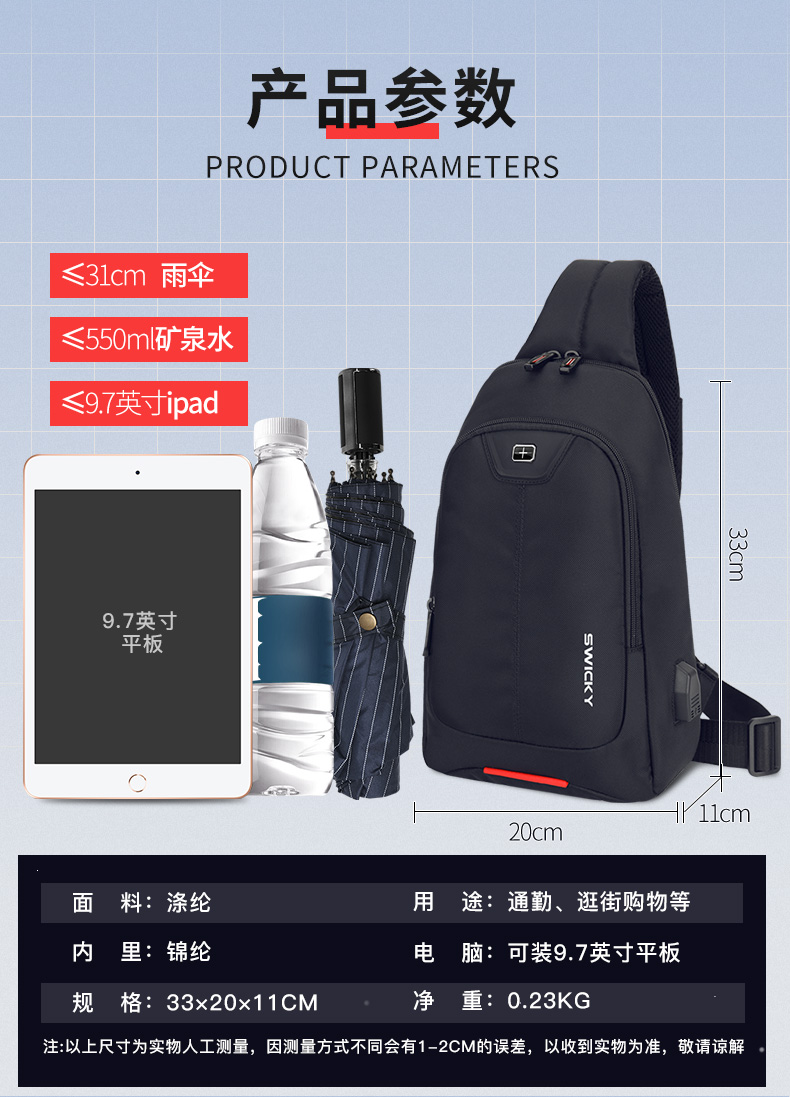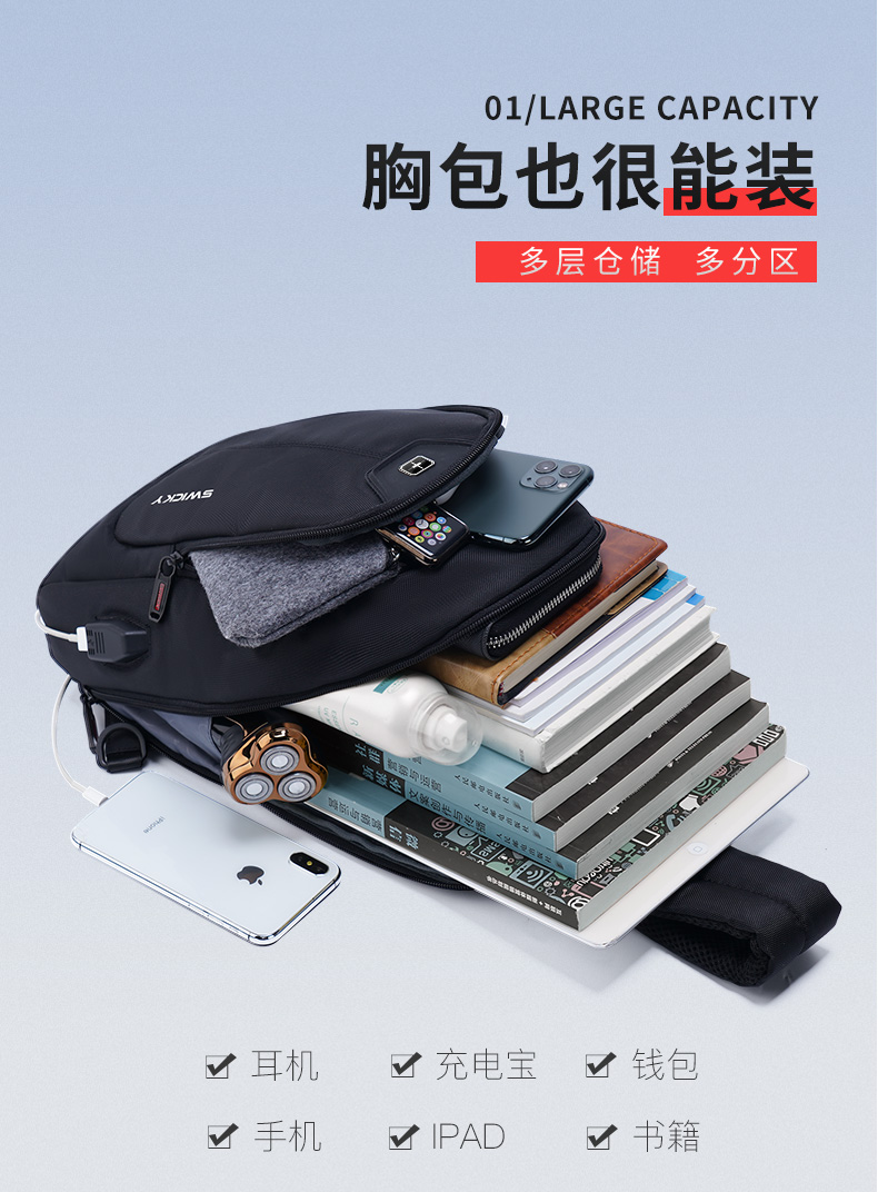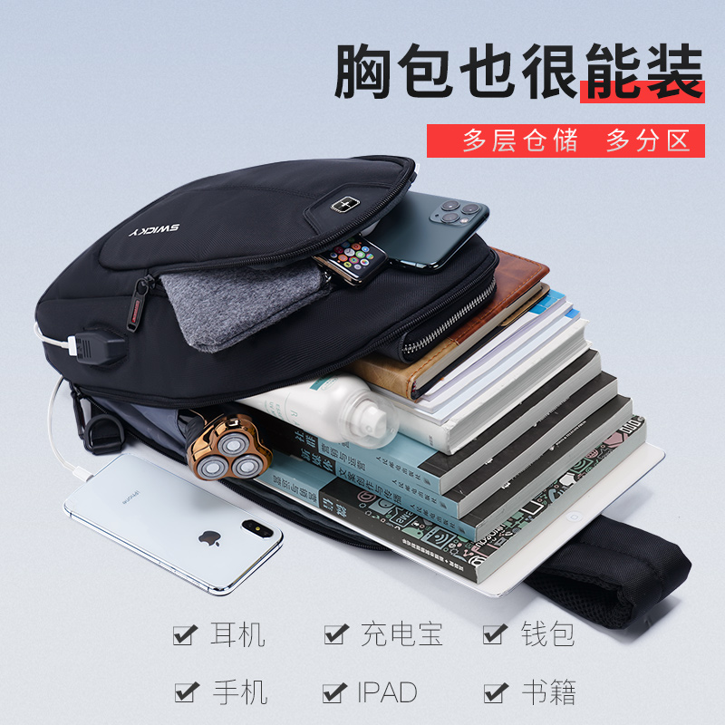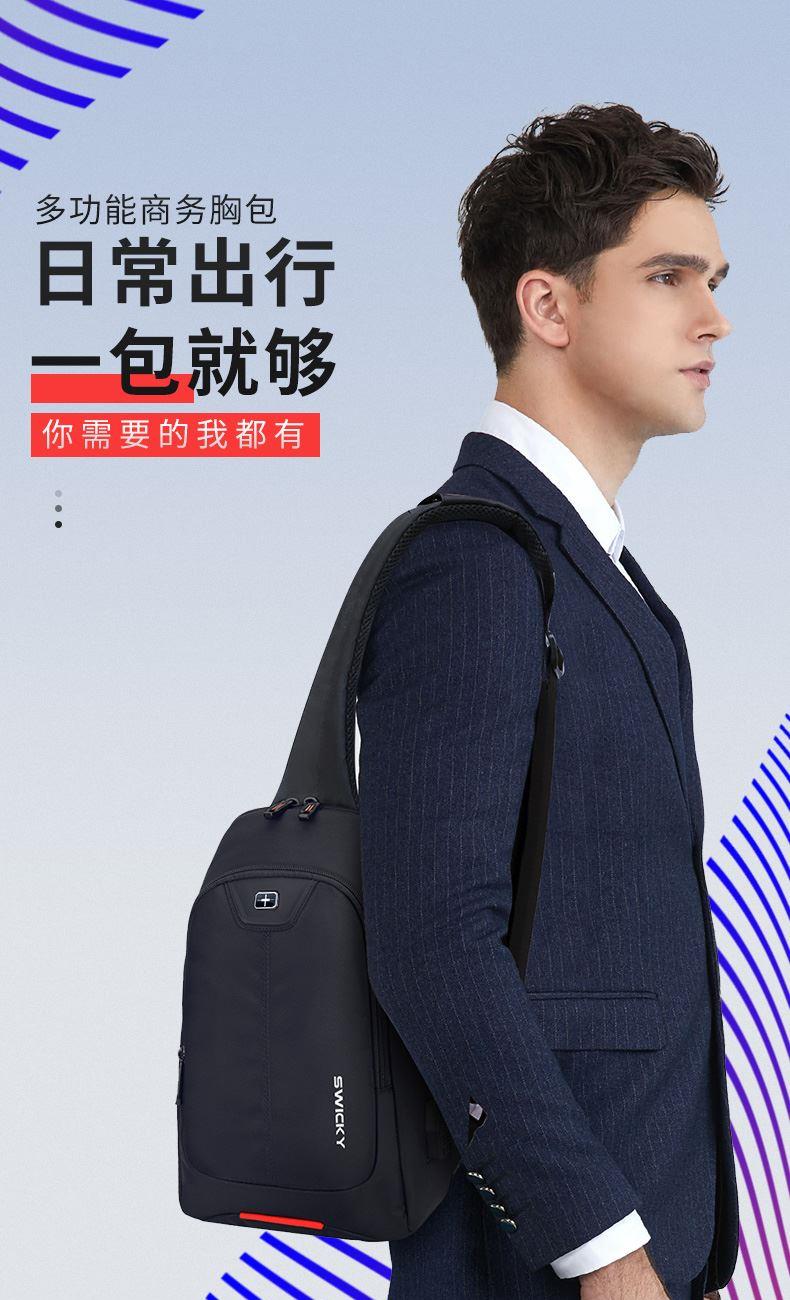 SWICKY瑞士男士胸包商务单肩斜挎包55001