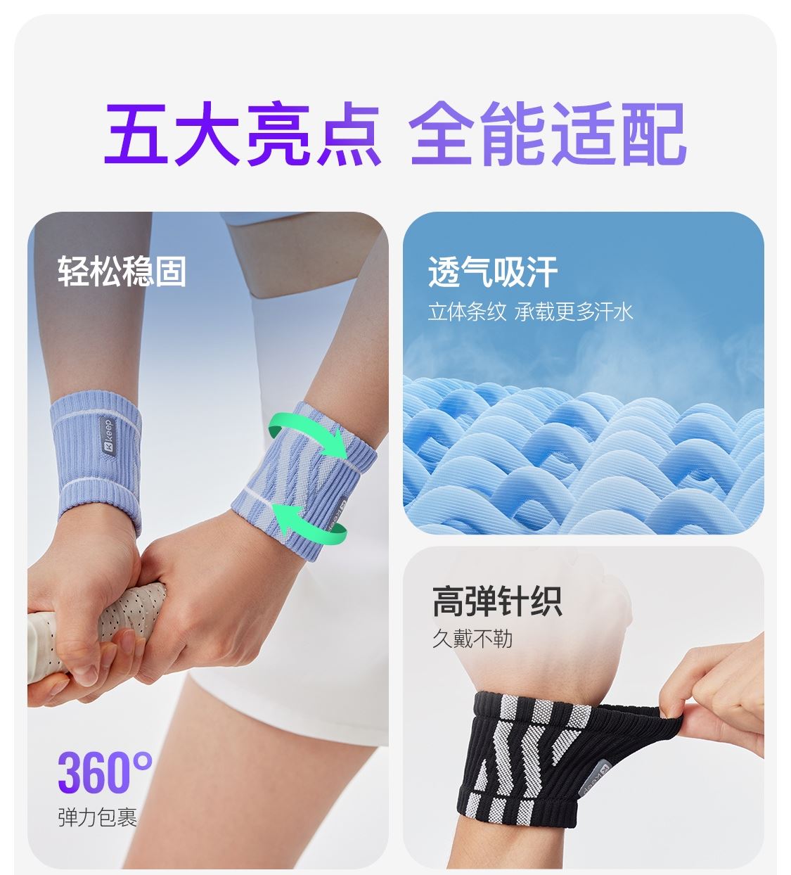Keep运动针织护腕--蓝/绿/黑/灰色