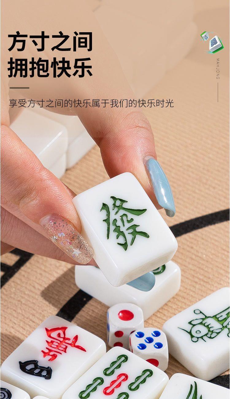 麻将:材质密胺全套144张,麻将尺寸26*18*11.5mm,毛毡包尺寸30*25*8.5,颜色白粉蓝绿,高温模具压制,雕刻清晰,手感圆润,定制桌布,加厚防滑