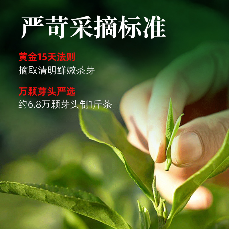 4、清明期间采摘,精选一芽一叶、一芽二叶,确保茶叶的鲜嫩与匀整。