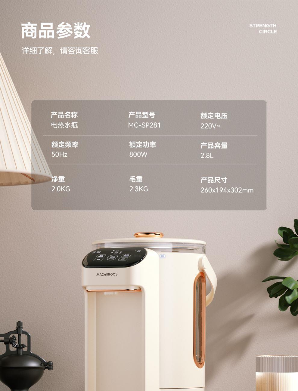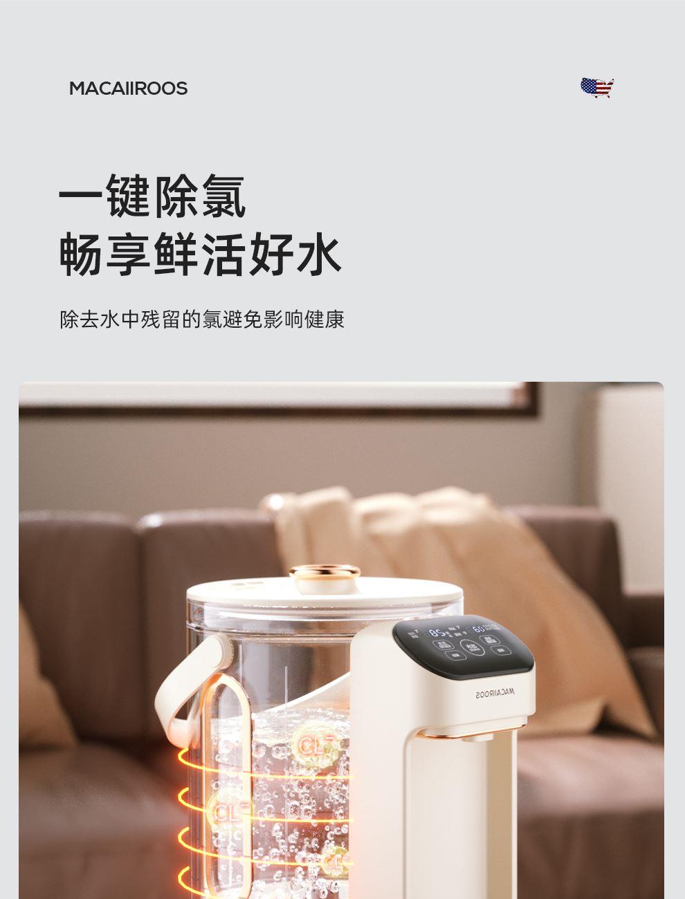 一键除氯&2.8L大容量除去水中残留的氯健康饮水;无需频繁加水煮水,满足全家饮水需求;