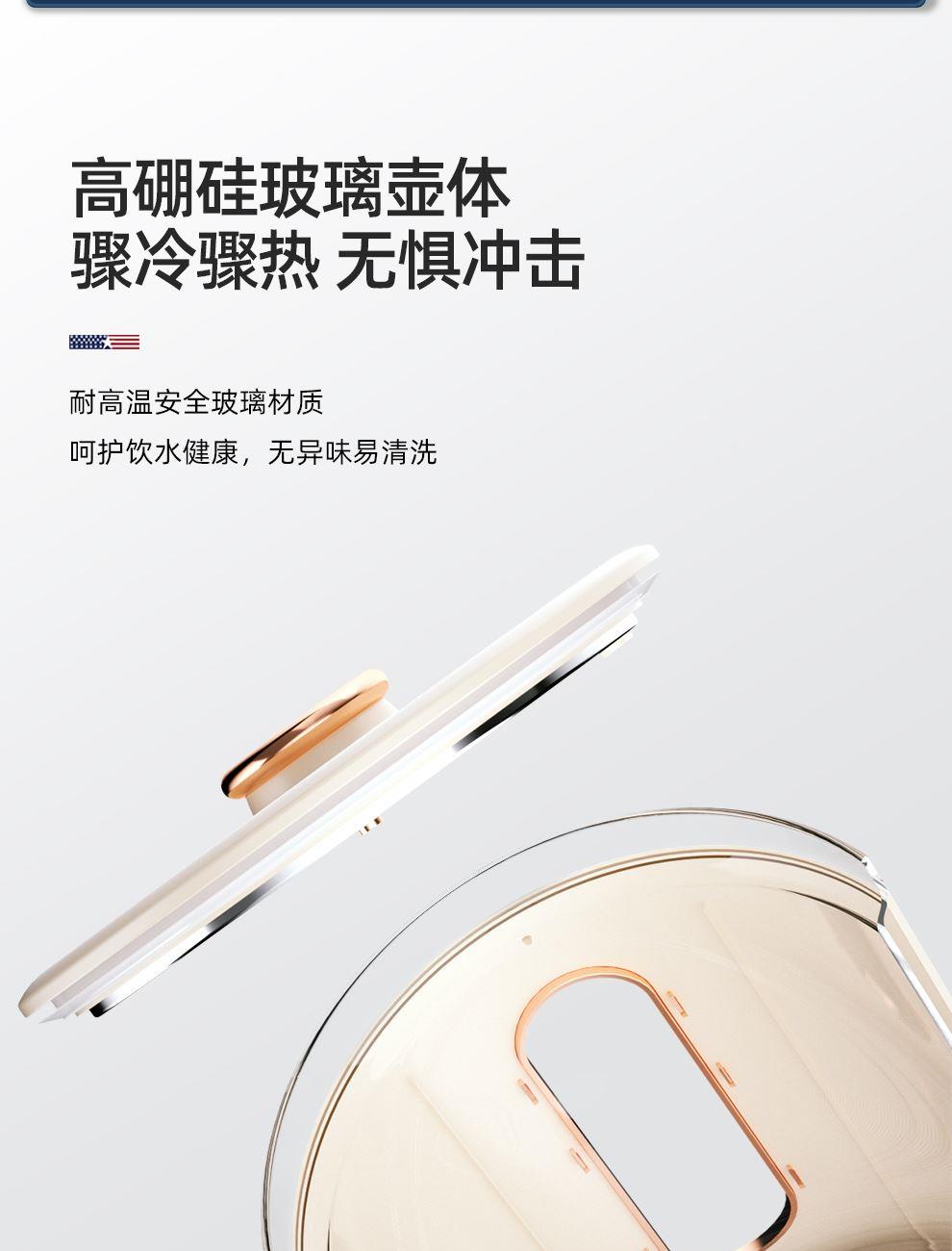 内胆材质304不锈钢发热盘,高硼硅玻璃水瓶,内钢盖,健康烧水;