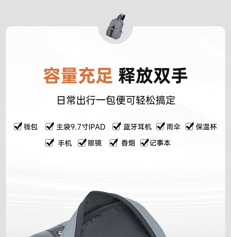 型 号:55023尺 寸:200*120*300MM材 质:聚酯纤维 颜 色:黑色 重 量:0.4KG 斜挎包:内部设有储物小袋,收纳更合理。轻盛包身,减负出行。
