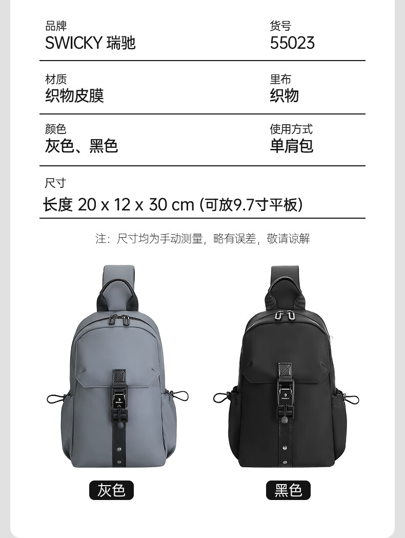 SWICKY单肩斜挎包男士大容量55023黑色