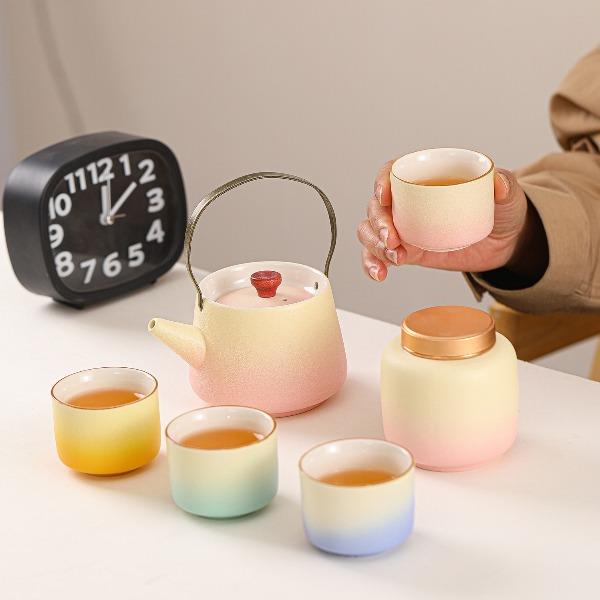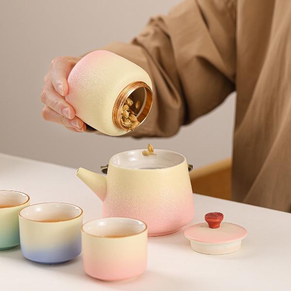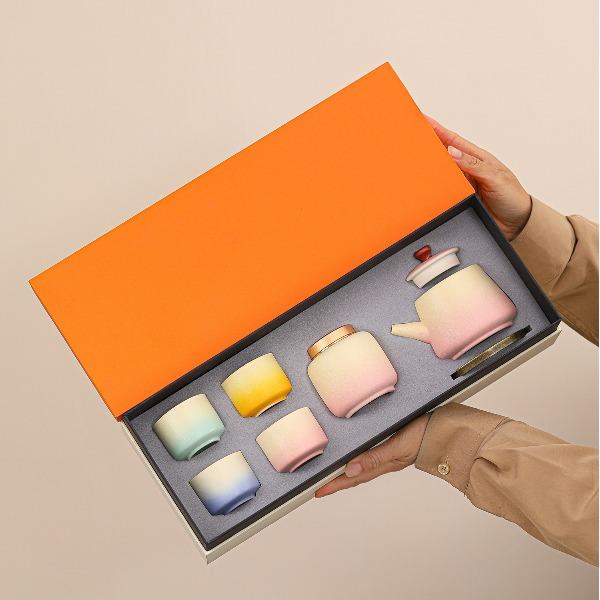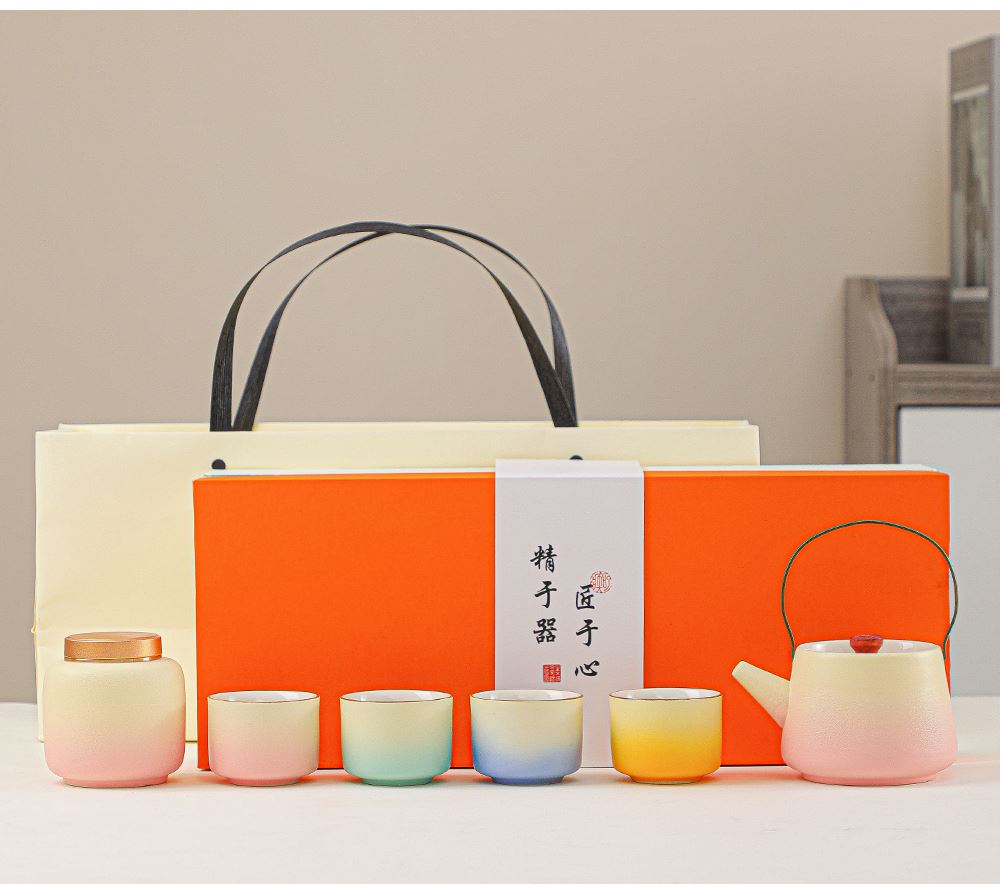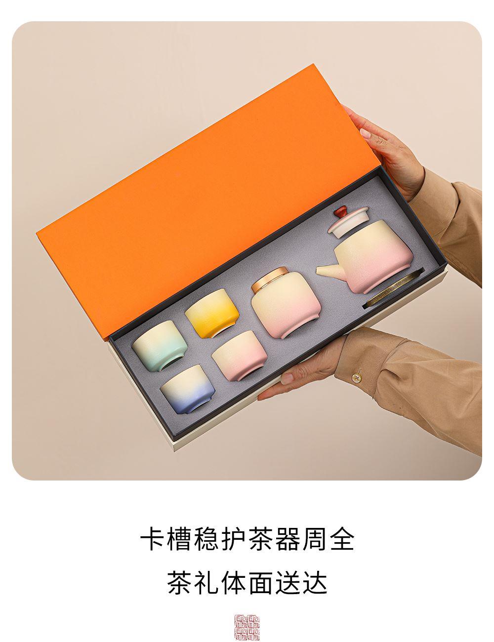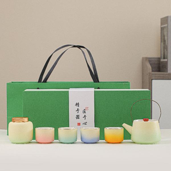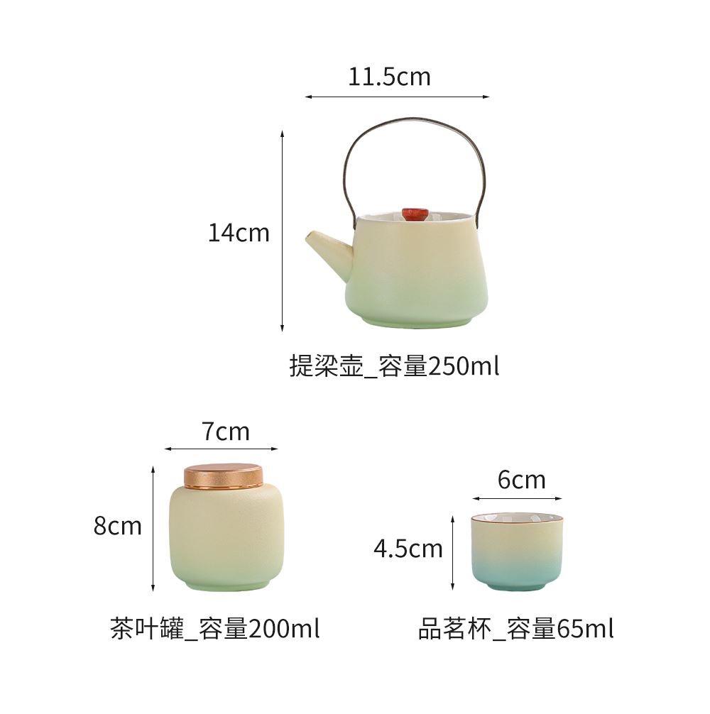壶:14*11.5厘米252ml 茶叶罐:8*7厘米200ml 品茗杯:6*4.5厘米65ml 礼盒:41*15.5*12厘米 天然矿物釉,高温烧制无铅镉 ,精致便携, 搭配礼盒包装,自用赠礼两宜,瓷胎密实不吸茶香,久用更显韵味,以茶汤的甘醇,唤醒内心的宁静。