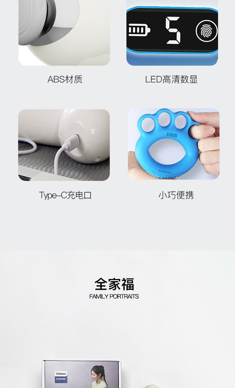 颜色:白色+蓝色 额定电压/功率:5V/10W 电池:1500mAh 握力器尺寸:100*100*20mm 筋膜枪尺寸:149*117*54mm 产品净重:0.71kg 包装清单:筋膜枪x1、握力器x1、充电线x1、说明书x1