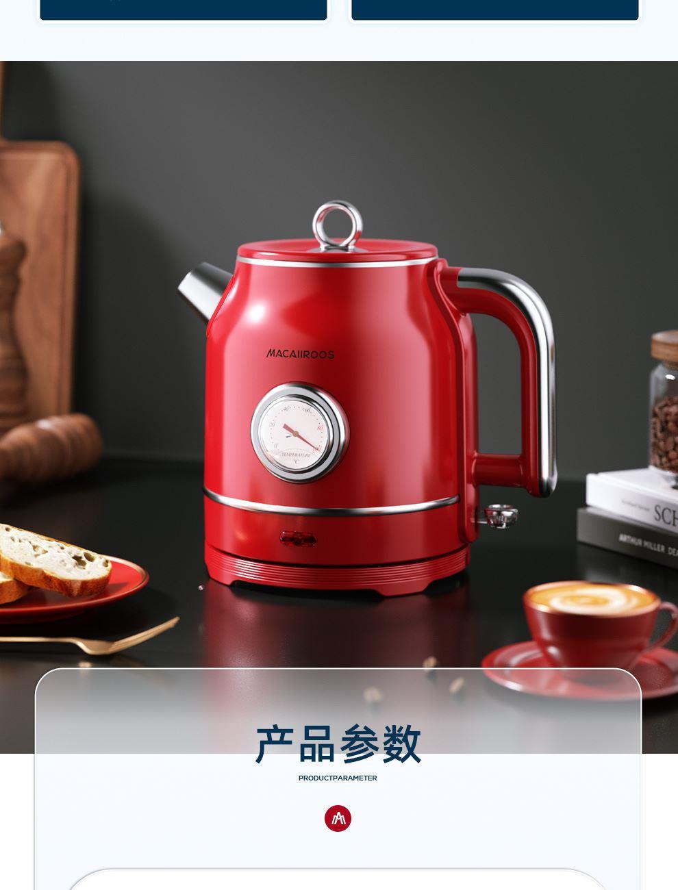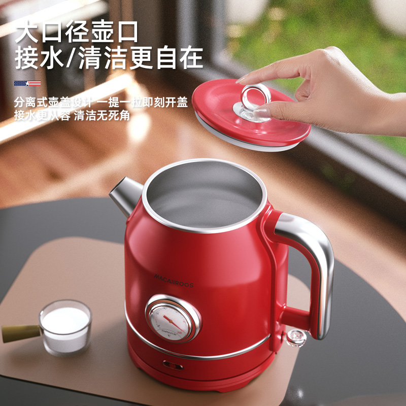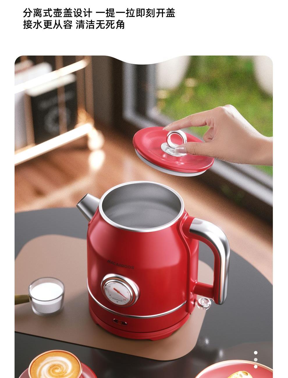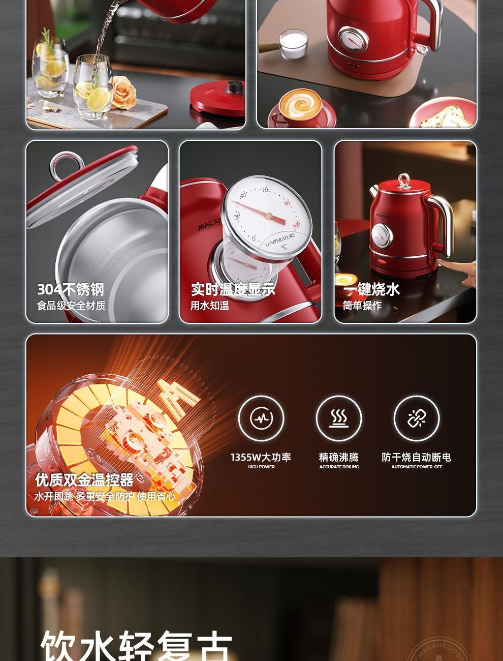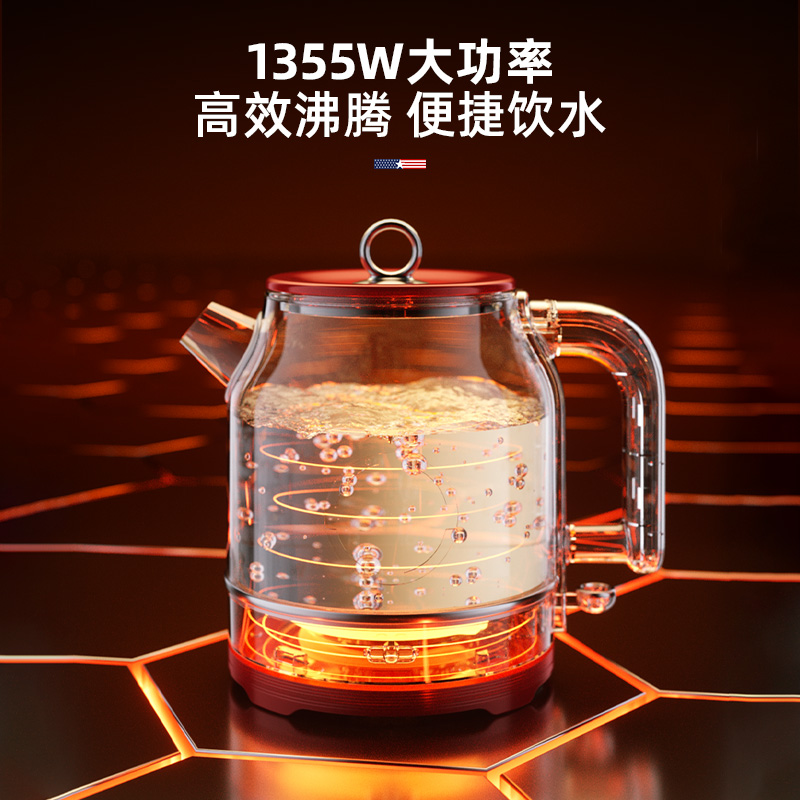 额定功率:1355W 额定容量:1.3L 额定电压:220V~ 额定频率:50Hz 产品净重:0.9kg 产品毛重:1.05kg 整箱重量:13.9kg 装 箱 数:12台/箱 实时温显自带温显一键烧水,实时温度显示,用水知温; 304不锈钢内胆、内钢盖食品接触用材质,耐高温耐腐蚀; 一键烧水1355W大功率烧水快,水开跳挚,操作简单; 分离式上盖&安全设计方便接水和清洗,双层防烫壶身,防干烧自动断电。