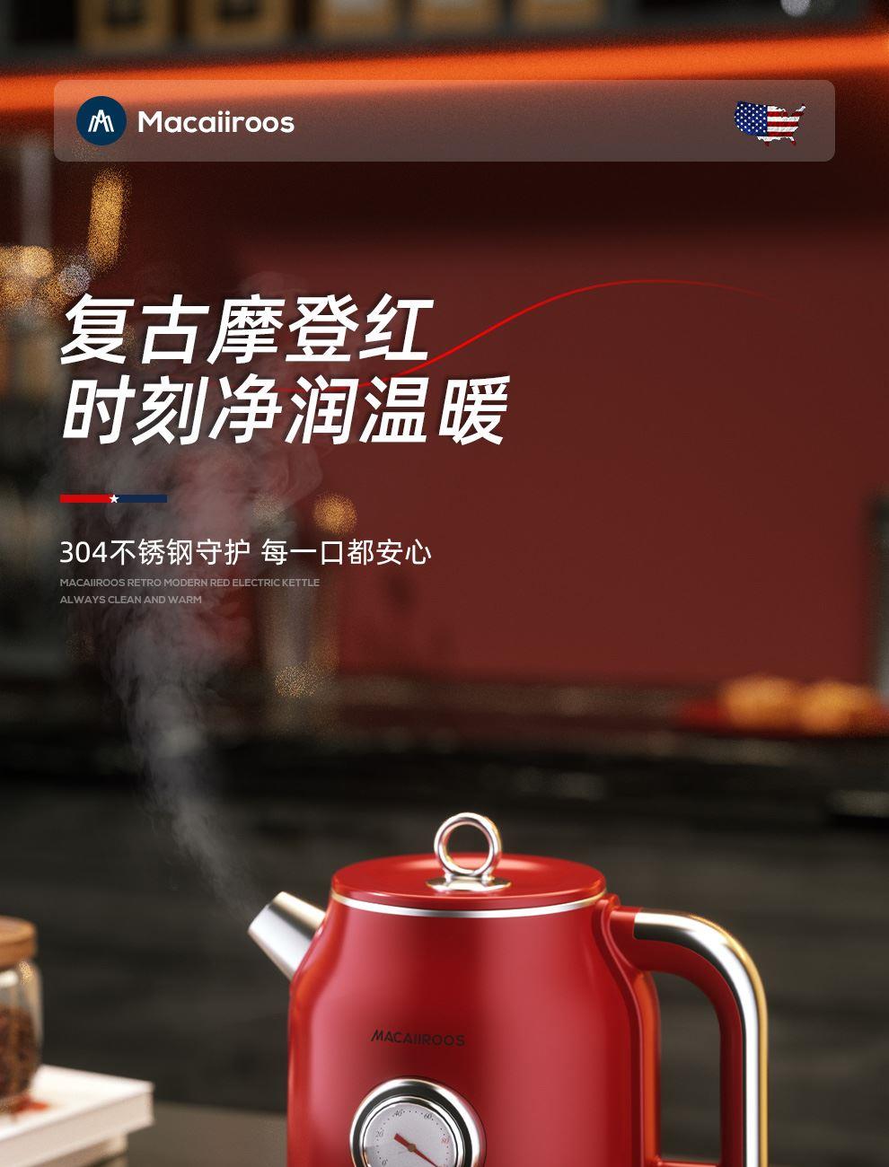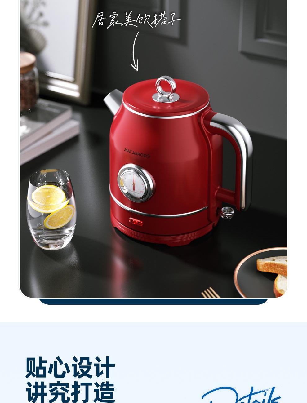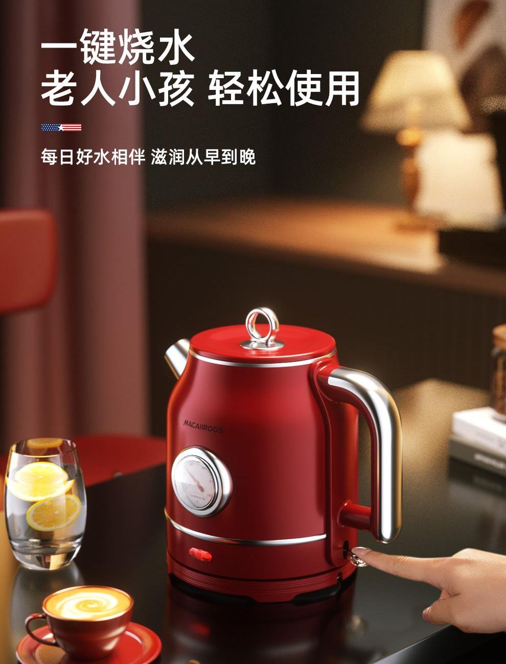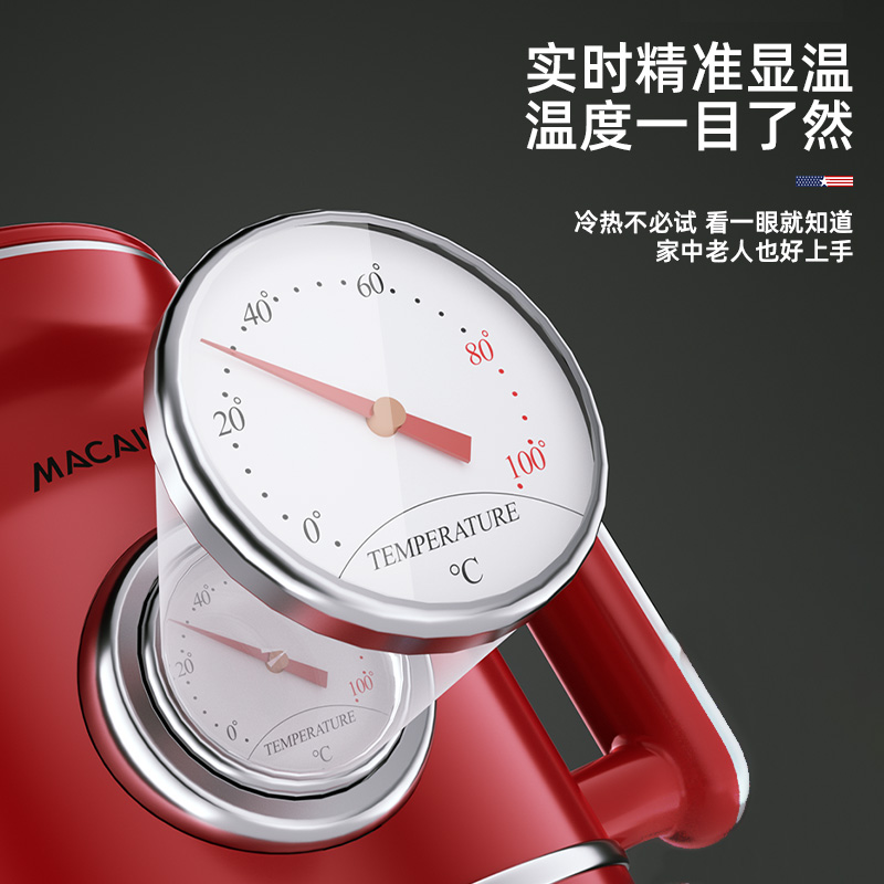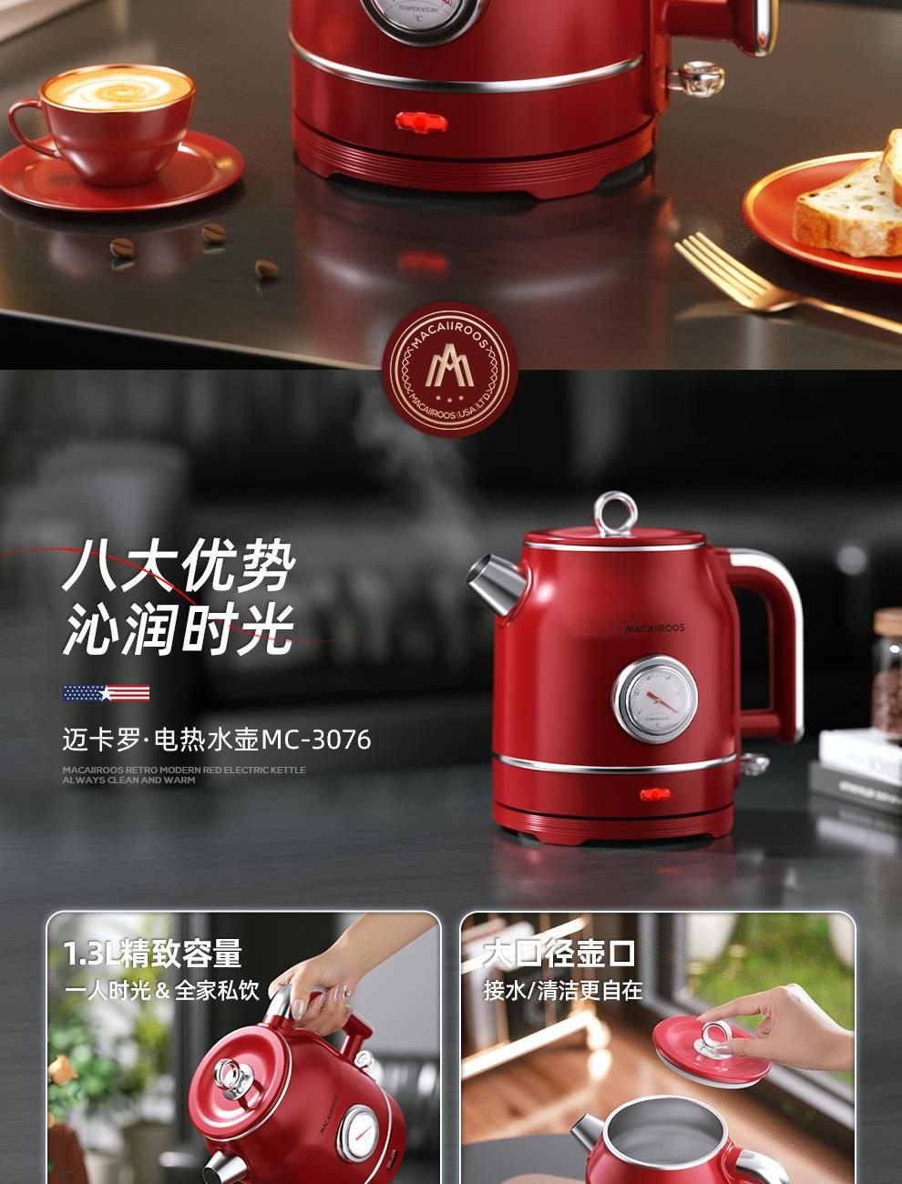 额定功率:1355W 额定容量:1.3L 额定电压:220V~ 额定频率:50Hz 产品净重:0.9kg 产品毛重:1.05kg 整箱重量:13.9kg 装 箱 数:12台/箱 实时温显自带温显一键烧水,实时温度显示,用水知温; 304不锈钢内胆、内钢盖食品接触用材质,耐高温耐腐蚀; 一键烧水1355W大功率烧水快,水开跳挚,操作简单; 分离式上盖&安全设计方便接水和清洗,双层防烫壶身,防干烧自动断电。
