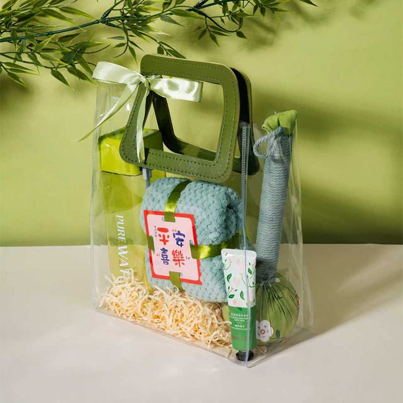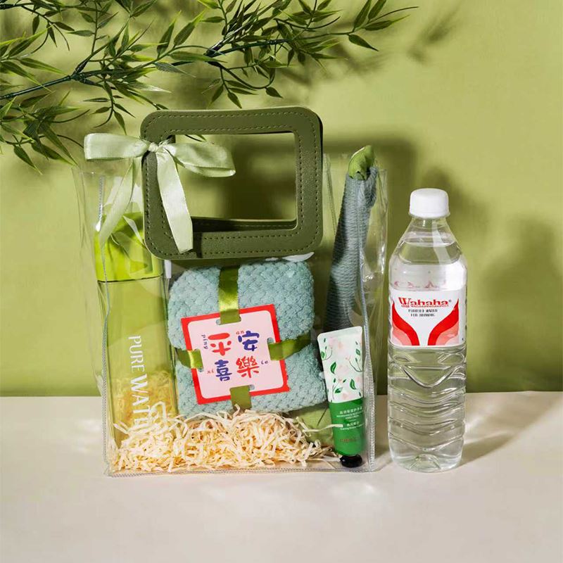 产品配置:PVC透明手提袋大*1 平安喜乐菠萝纹毛巾*1