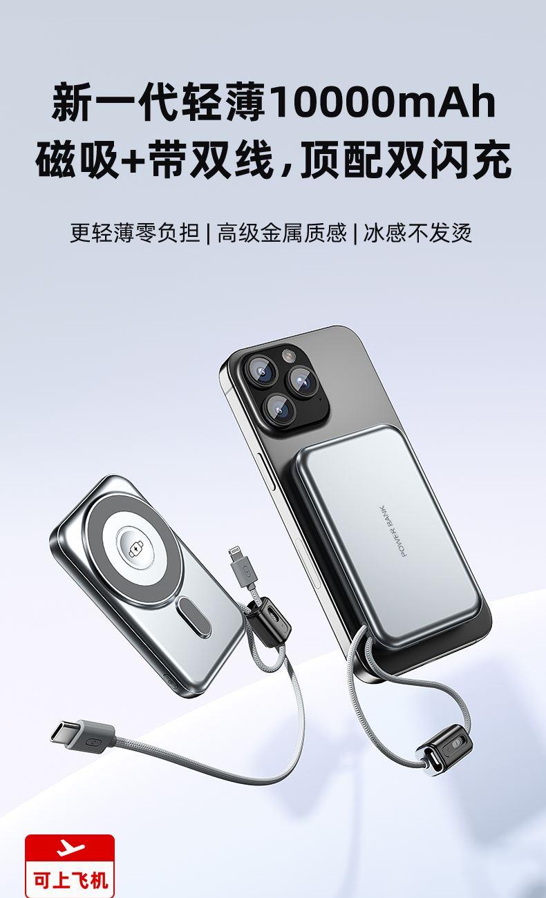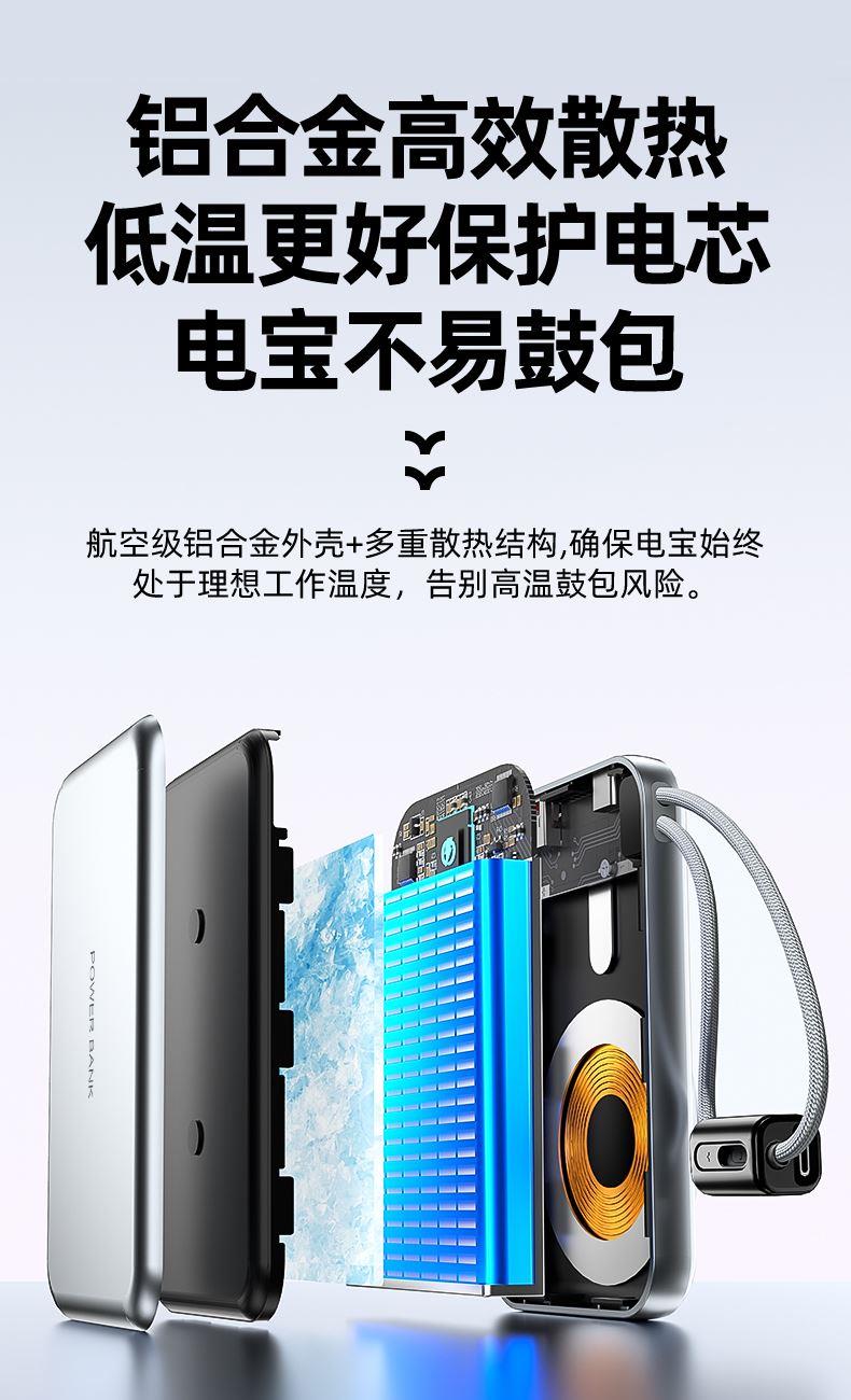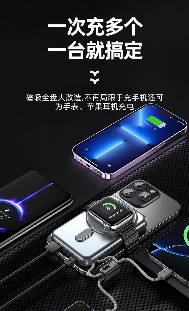 奥苏米刀锋磁吸三合一铝合金快充移动电源