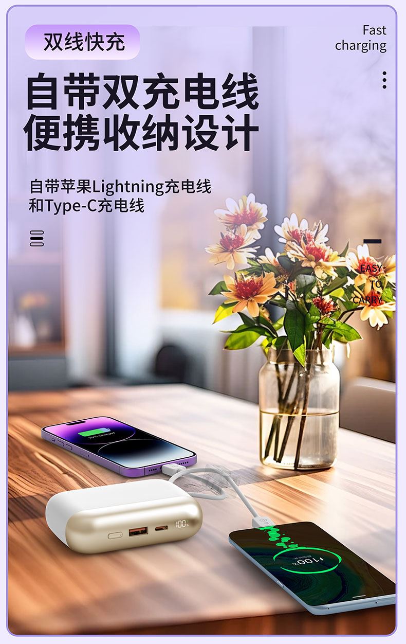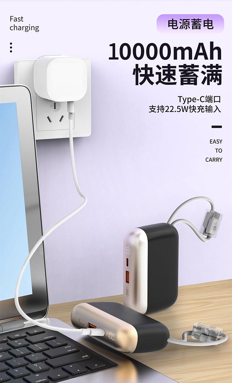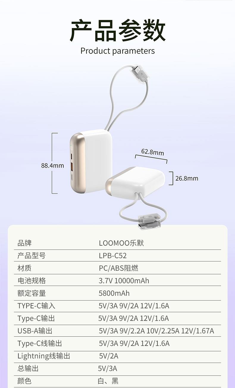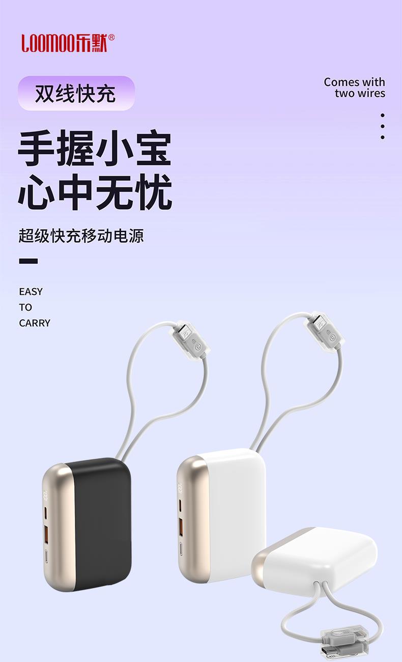 乐默自带两线超级快充10000毫安移动电源LPB-C52