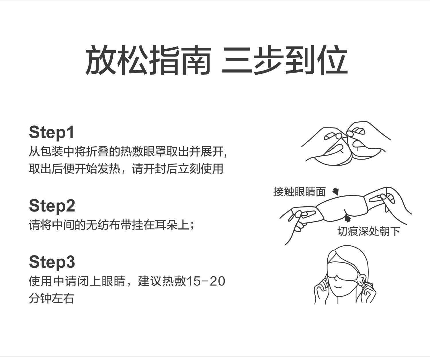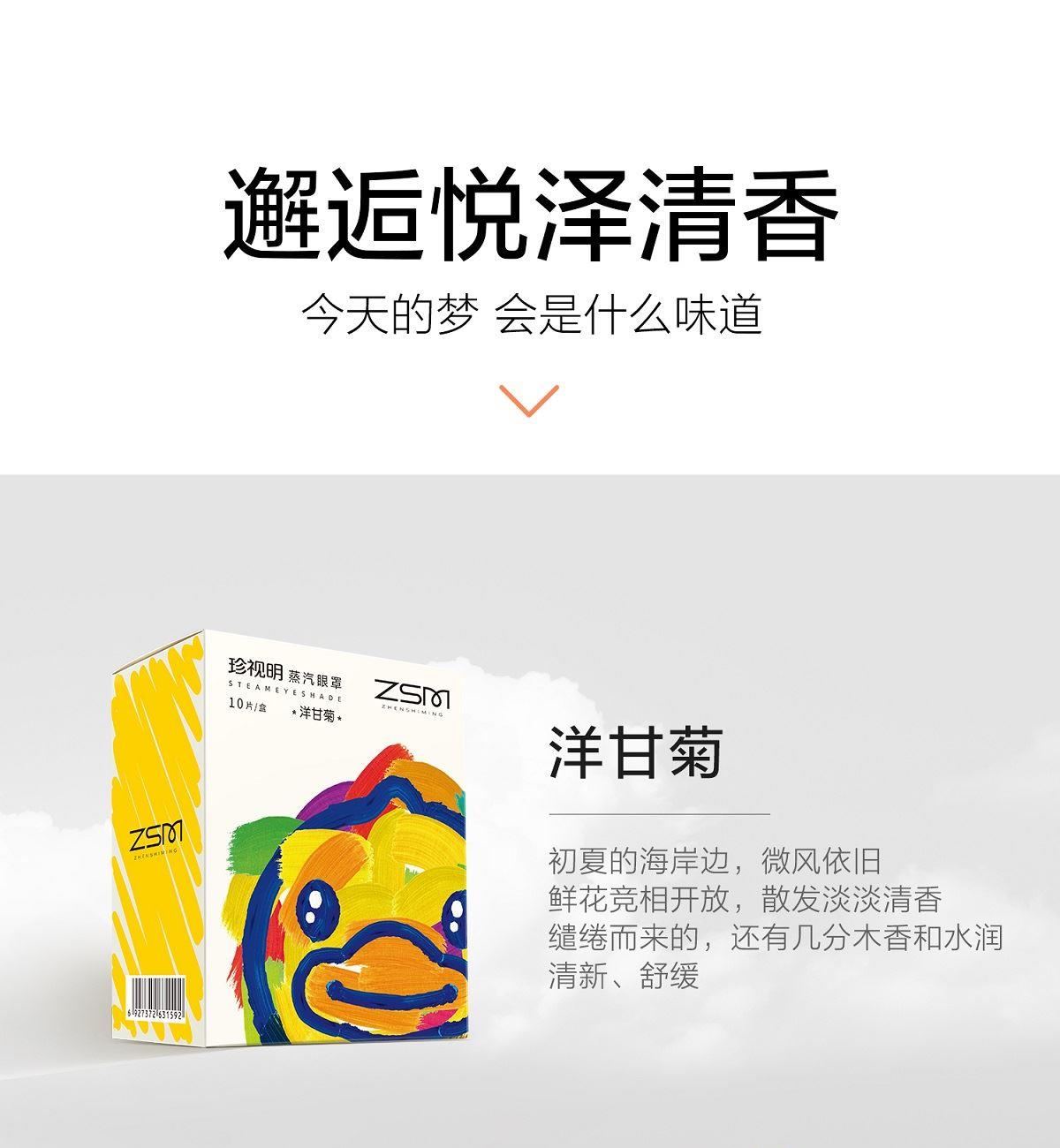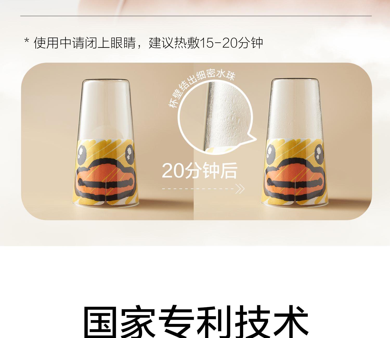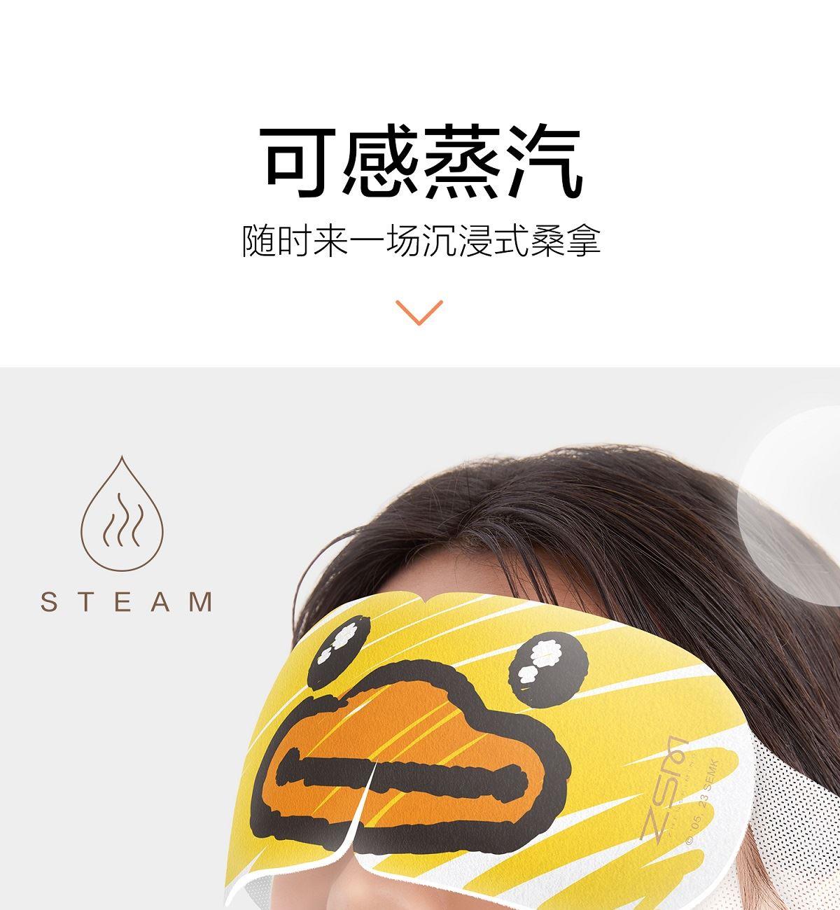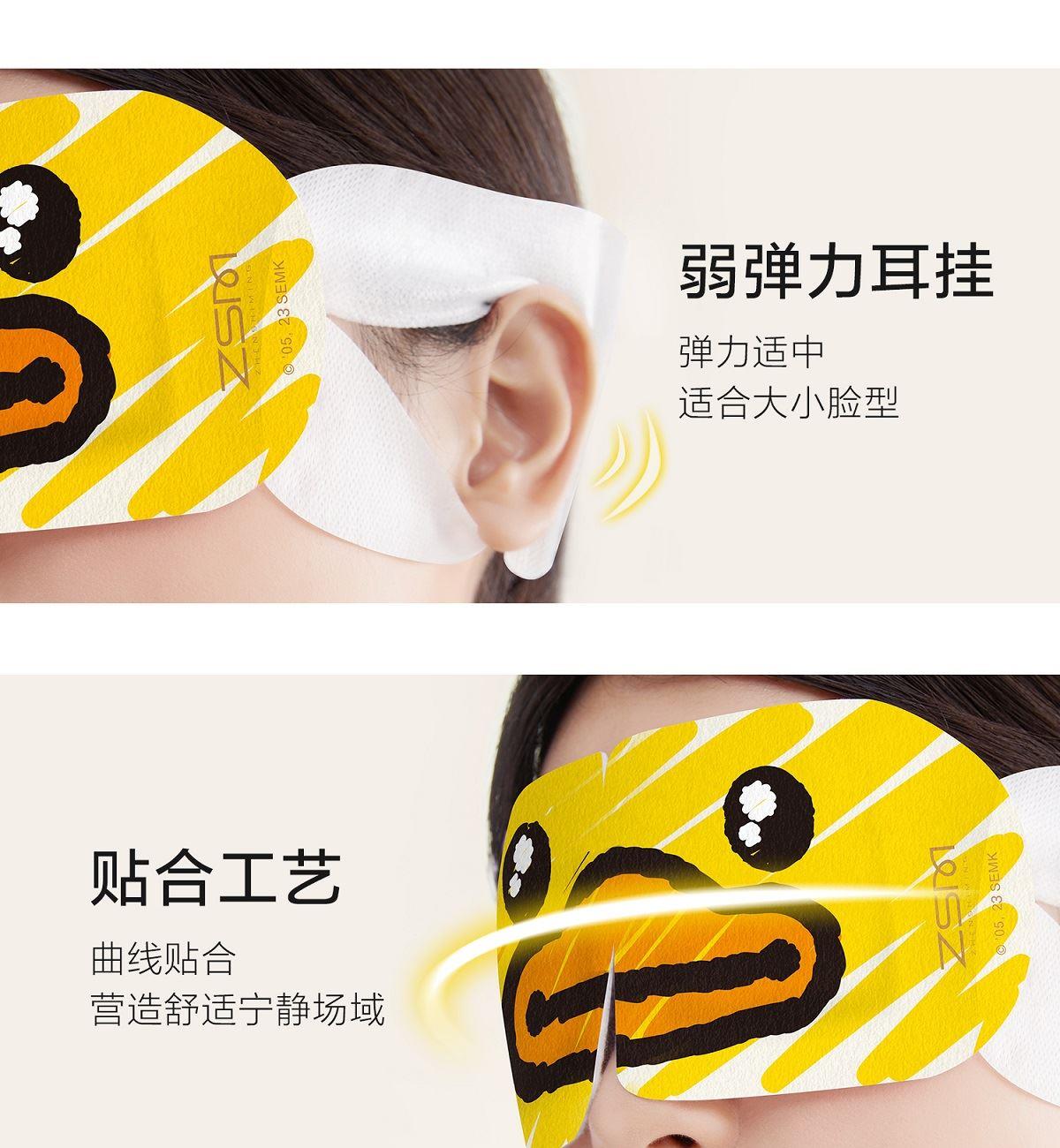 规格:1片/袋 5袋/盒 香型:小黄鸭小艺术家系列 洋甘菊 保质质:3年 1.可感蒸汽,温润眼周,持久发热,给眼部来一场沉浸式桑拿体验。 2.洋甘菊、薰衣草精油添加,选择喜爱的香味入眠。 3.小云朵面料,呵护眼周脆弱肌肤;弱弹力耳挂,弹力适中,适合大小脸型;贴合工艺,静享眼部SPA。