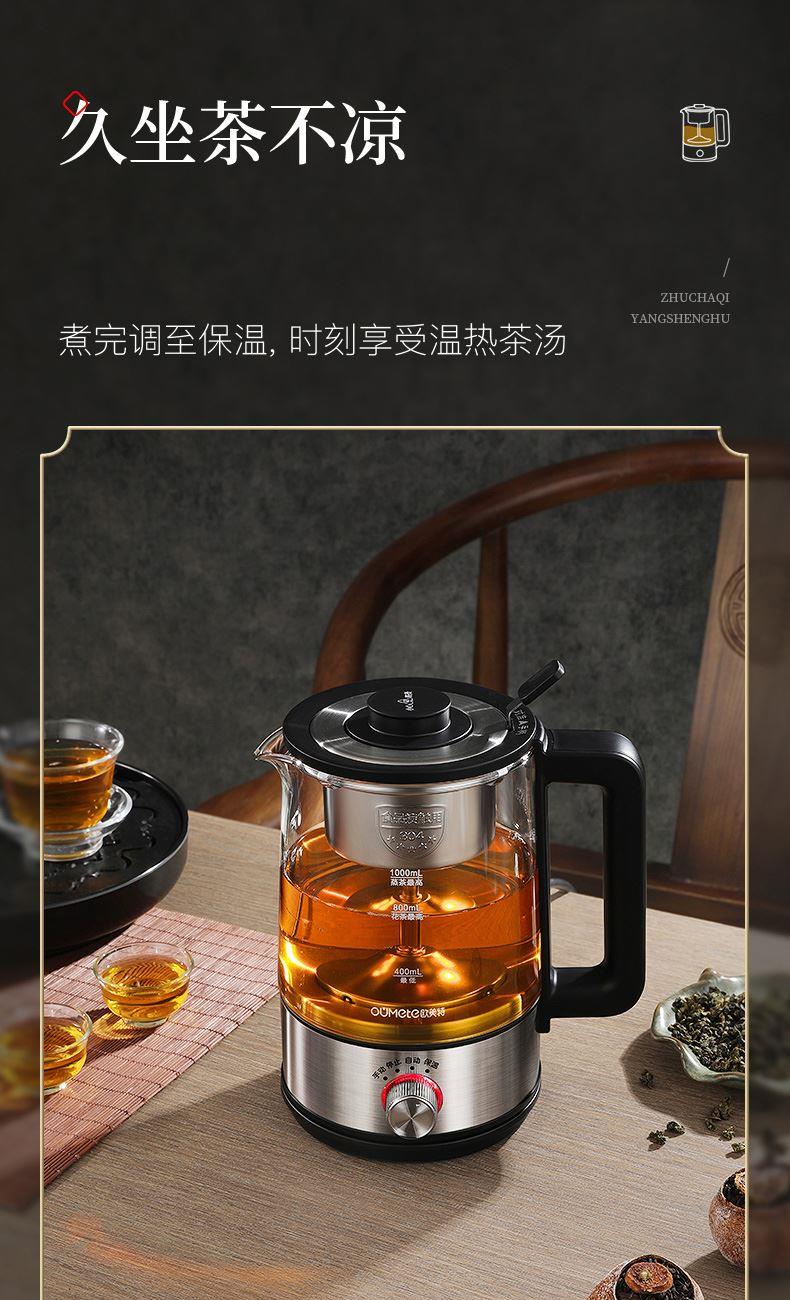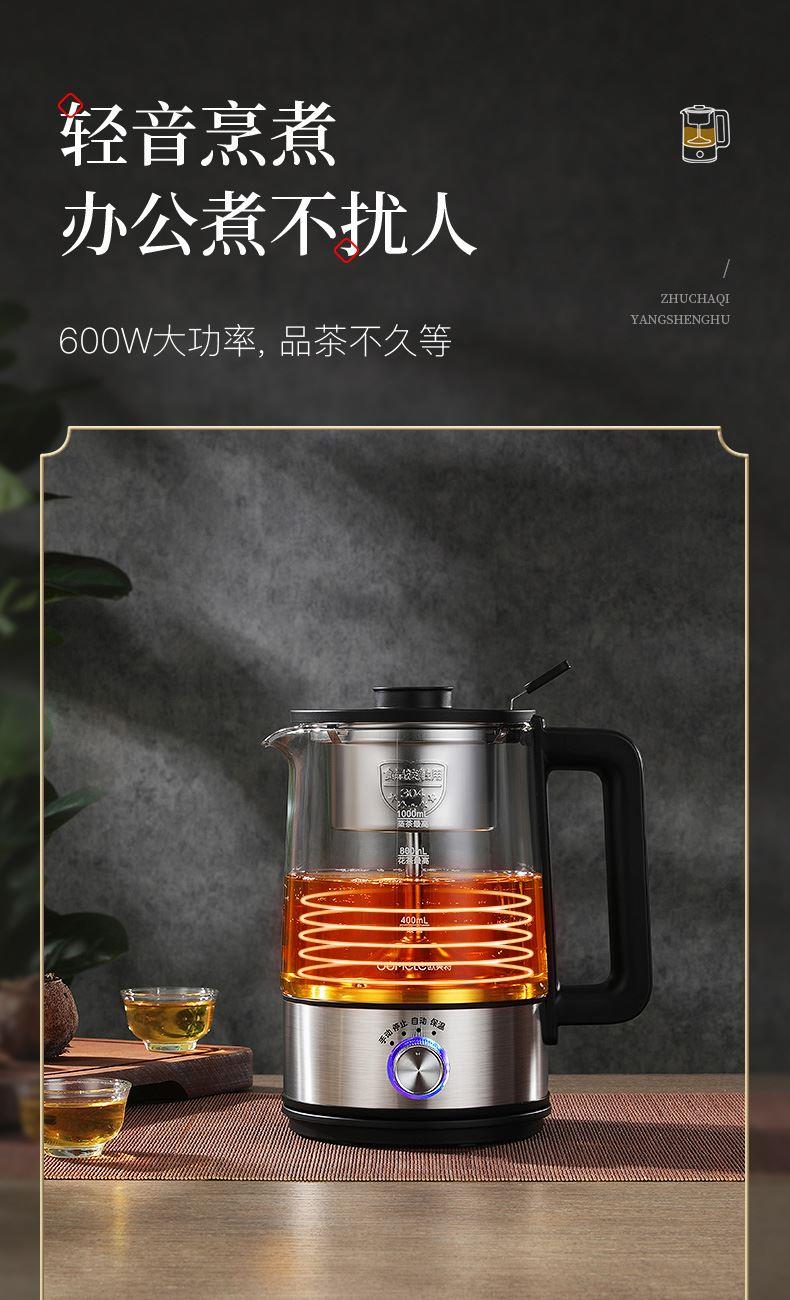 新中式滴滤是咖啡机 额定功率:600W额定容量:1000毫升 功能:自动档、手动档、保温档 适合群体:新中式咖啡机,特点: 1、全新升级分体式过滤网--声音更小,更易清洗,蒸煮口感好 2、升级恒温功能,持续保温在70度左右,可喝热茶, 3、升级不锈钢装饰圈,整机质感更强 4、耐热玻璃,冷热不爆裂。欣赏煮茶过程 6、传统蒸煮方式与现代工艺融合,享受新的饮茶感受