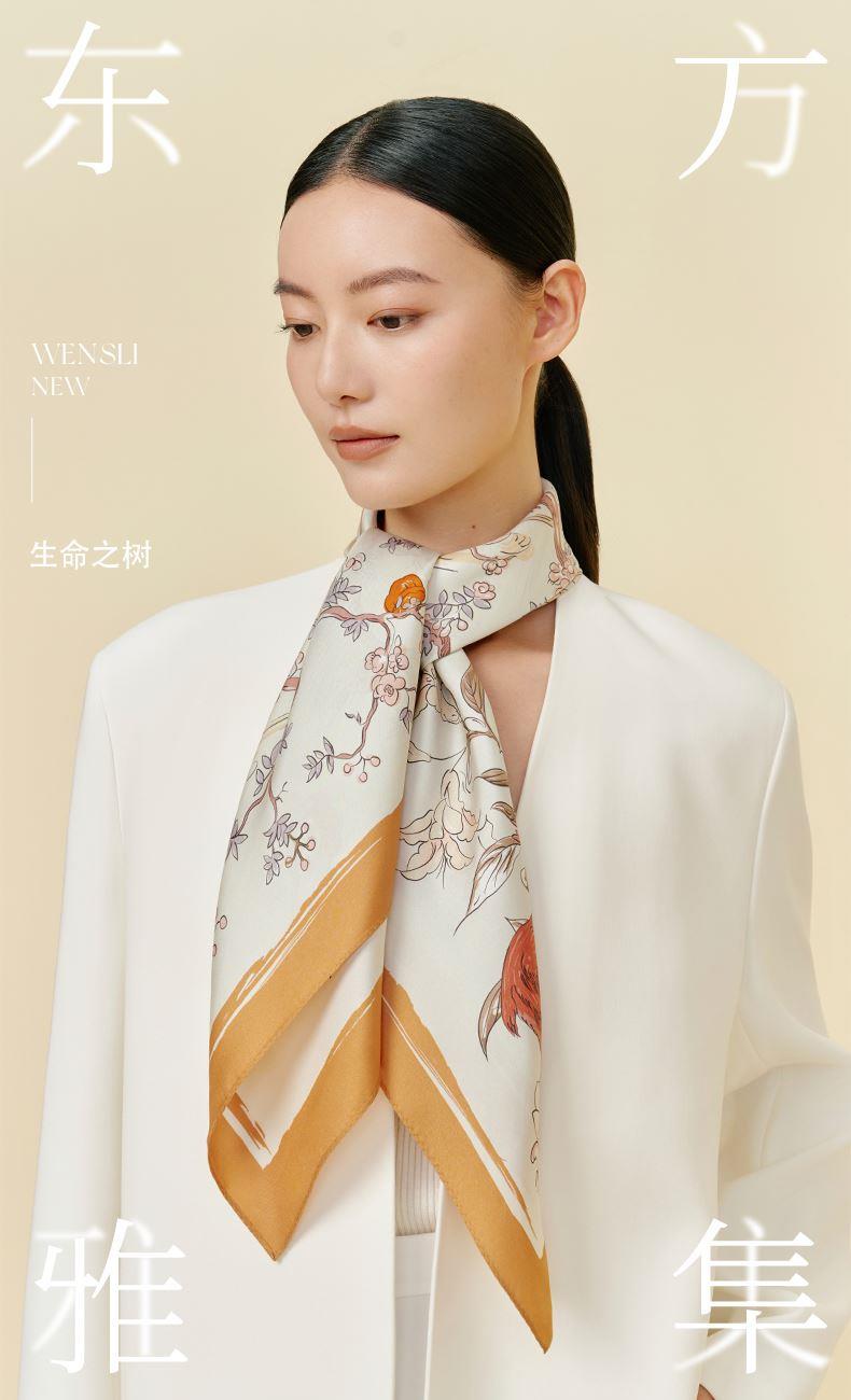 生命之树-双面印花大方巾万事利2026春夏专柜新品