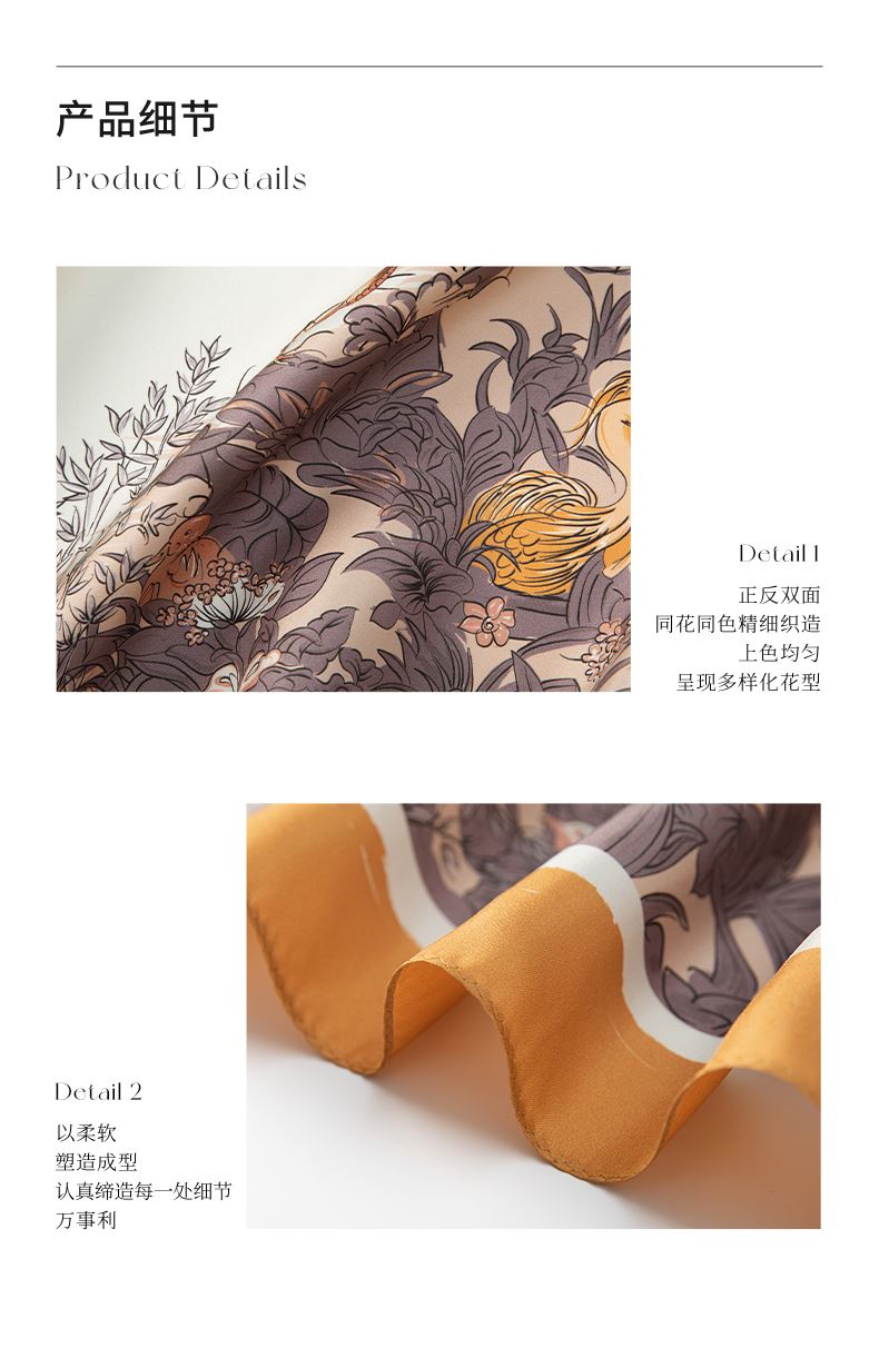 尺寸:88CM×88CM 材质:100桑蚕丝 面料:斜纹绸 卷边:机卷 颜色:粉色/黄色 工艺:双面同色
