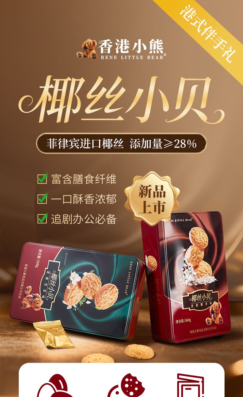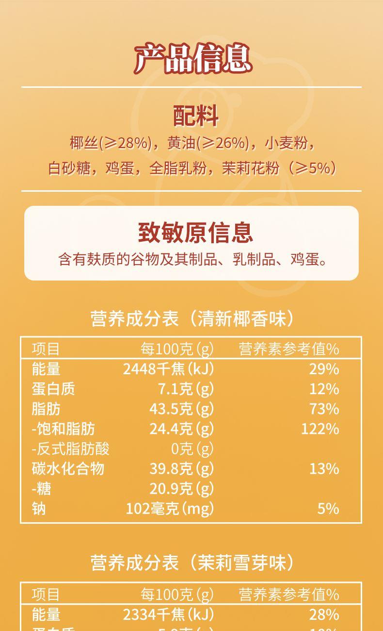 (茉莉雪芽味)+(清新椰香味) 菲律宾进口椰丝 添加量>28%,富含膳食纤维,一口酥香浓郁