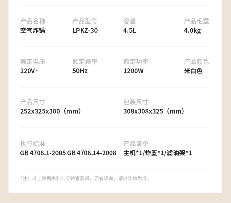 利仁空气炸锅LPKZ-30升级款